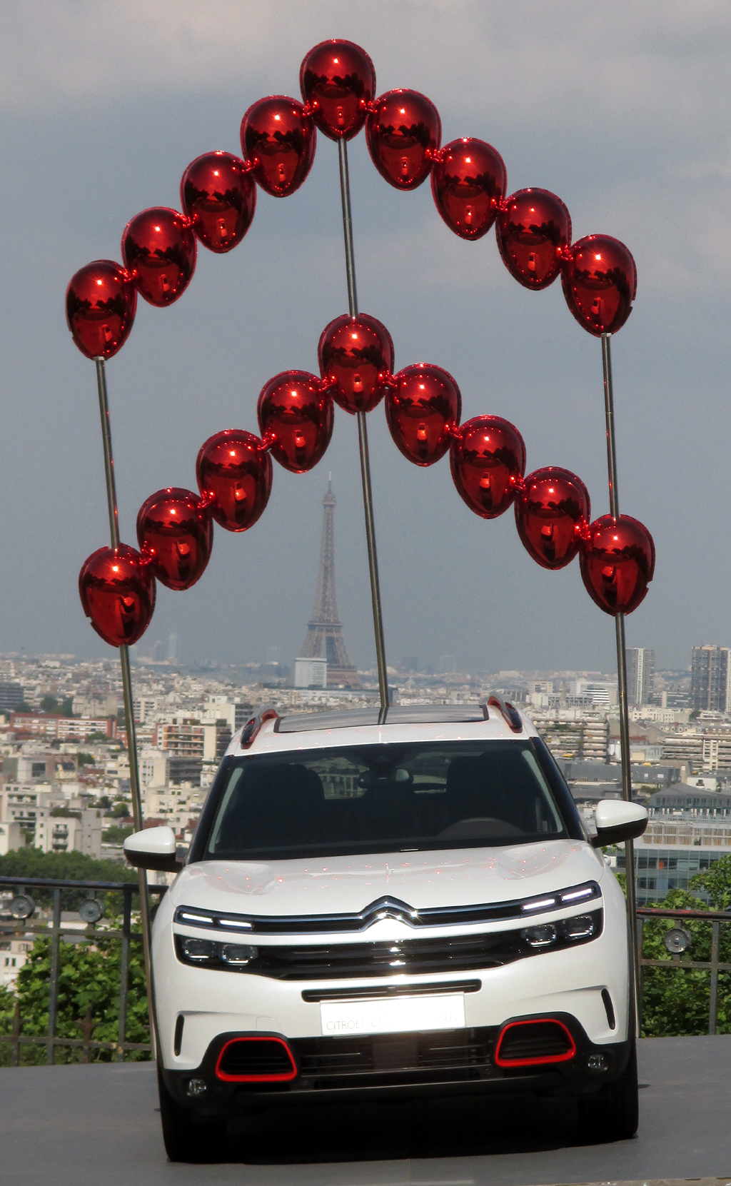 Paris – Unten fließt die Seine vorbei. Vom oberhalb gelegenen Park Saint-Cloud kann man gut sehen, wie sich ganz hinten am Horizont der Eiffelturm langsam aus dem Dunst der Großstadt ins mittägliche Mai-Sonnenlicht schält. Auf dem Grün des Parkplateaus im Südwesten von Paris ragt neben wüstenbraunen Workshop-Zelten, zu denen statt rotem Teppich rote Bretter führen, ein übergroßer Doppelwinkel aus Ballonovalen so empor, als würde er gleich in die Luft gehen. Die Gedankenverbindung ist wahrscheinlich nicht gewollt, könnte aber passen: Mit dem C5 stellt Citroën an diesem Tag in Paris den neuen Aircross vor, für Markenchefin Linda Jackson das „neue Flaggschiff der Marke“.