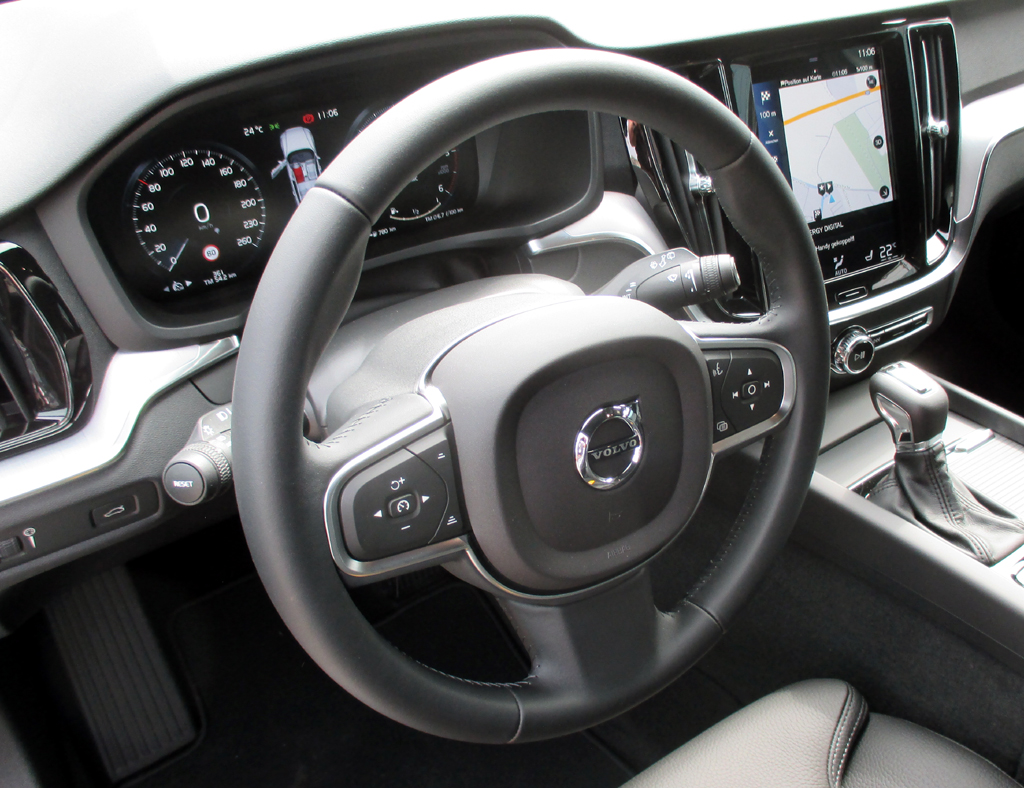Das Auto: Kombis haben bei Volvo, meist als Buckel-Volvo, schon eine längere Tradition. Sie gehen auf den Duett aus dem Jahr 1953 zurück, erinnert Deutschland-Chef Thomas Bauch. Wie der größere Bruder, der V90, fährt auch der V60 als fünftüriger Fünfsitzer nun in der aktuellen Formensprache der Schweden vor, kommt mit langer Motorhaube und mehr nach hinten versetzter Fahrgastzelle auf über 4,7 Metern Länge sauber verarbeitet daher, mutet für sein Segment ziemlich wertig an. Platz ist bei fast 2,9 Metern Radstand selbst hinten noch ordentlich vorhanden. Das Gepäckabteil fasst 529 bis 1441 Liter. Im Cockpit geht es übersichtlich zu. Für die Eingewöhnung in das Tablet-ähnliche Hochformat-Display in der Mitte sollte man sich jedoch etwas Zeit nehmen, um die Vorteile, die es bietet, am Ende auch wirklich nutzen zu können.