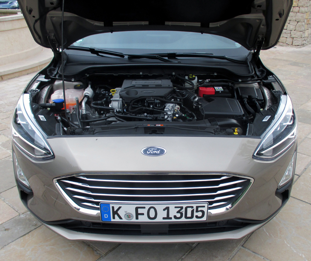 Das Fahren: Wir sind im 120-PS-Diesel-Kombi und in der 125-PS-Benziner-Limousine, beide handgeschaltet, unterwegs gewesen. Deren Bordcomputer haben bei uns am Ende nach wechselnden Stadt-, Landstraßen- und eher moderaten Autobahnfahrprofilen 5,8 (statt um die viereinhalb) und 6,4 (statt rund fünf) Liter angezeigt. Beim Fahrwerk, auf Wunsch auch als interaktives System mit adaptiver Dämpferregelung, setzt Ford erstmals zwei unterschiedliche Hinterachsen ein, die eine, die bei den 1,0-Liter-Benzin- und 1,5-Liter-Diesellimousinen agileres Kurvenfahren erlaubt, die andere, die bei allen Kombis sowie bei den 1,5-Liter-Benzin- und 2,0-Liter-Diesellimousinen mit der Agilität zugleich den Komfort erhöht. Das Fahrwerk im ST-Line ist etwas straffer abgestimmt. Die elektro-mechanische Servolenkung hätte im Kombi noch etwas direktere Rückmeldung geben können, was für die im spritzigen Fließheck wiederum, warum auch immer, kein Problem war. Die Scheibenbremsen, vorn innenbelüftet, packen dagegen standfest zu.