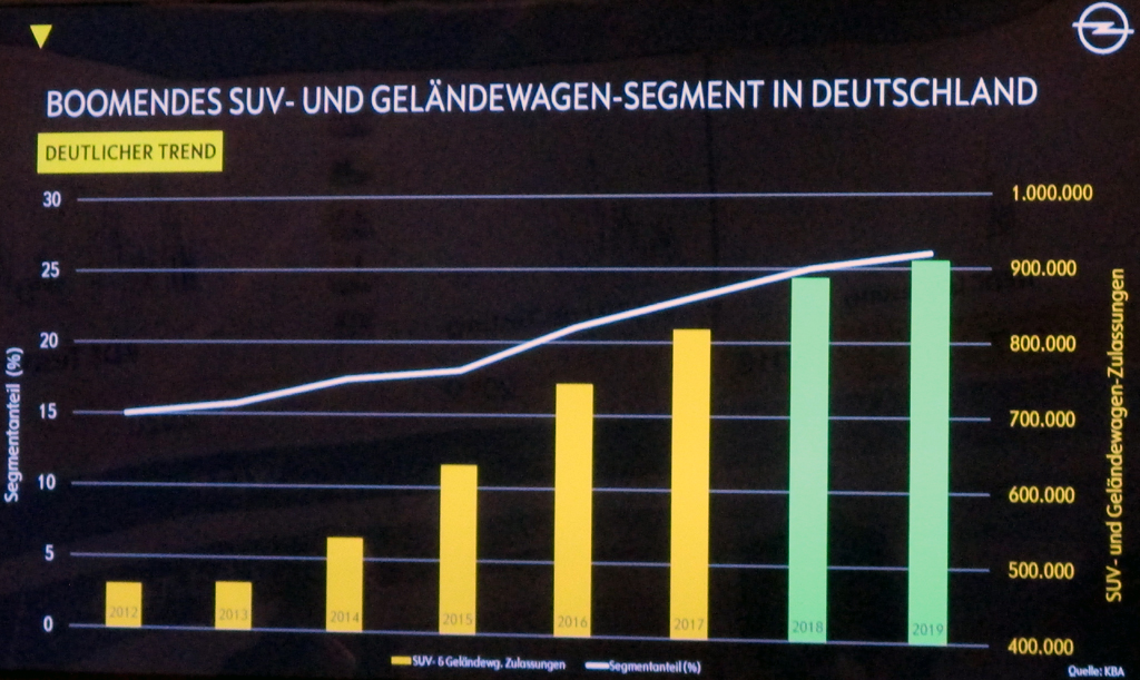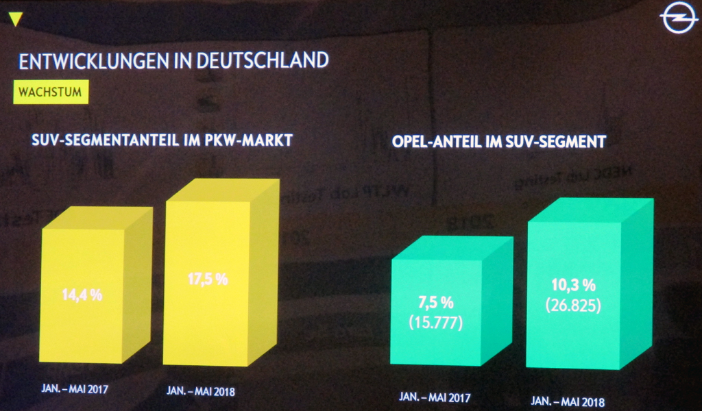 Mainz – Andreas Marx kann sich freuen: Das Kraftfahrtbundesamt hat bescheinigt, dass sich Opel in den ersten fünf Monaten 2018 bei uns als SUV-Marke Nummer 1 etabliert hat. Jeder vierte Käufer eines neuen Opel in Deutschland hat sich demnach zuletzt für einen Mokka X, Crossland X oder Grandland X entschieden, so Europa-Produktmarketing-Direktor Andreas Marx jetzt bei einer X-Champs-Veranstaltung in der Mainzer Opel-Arena. „Das entspricht unserem Plan, nach dem wir 2021 40 Prozent des Absatzes in diesem profitablen Segment erwarten.“ Für die steigende Nachfrage sei man mit den unterschiedlich großen X-Modellen im Offroad-Look, mit erhöhter Sitzposition, besserem Rundumblick und modernen Technologien auch motormäßig „bestens aufgestellt“.