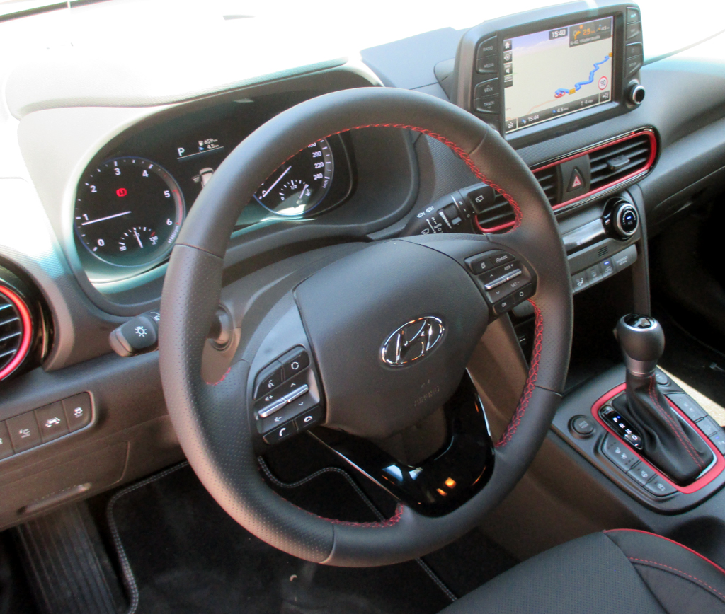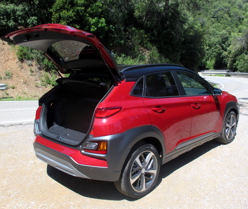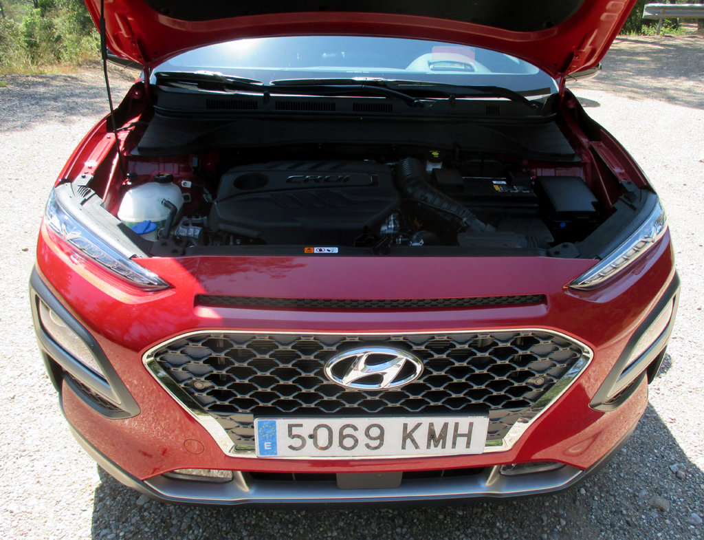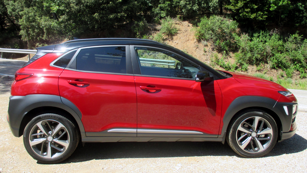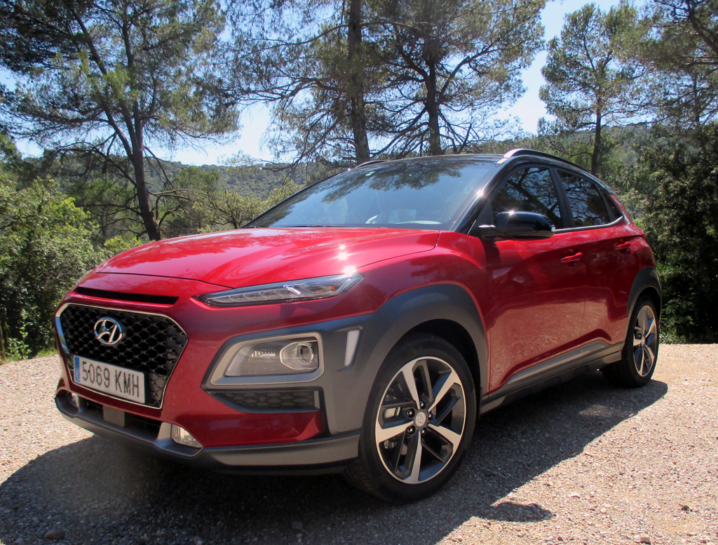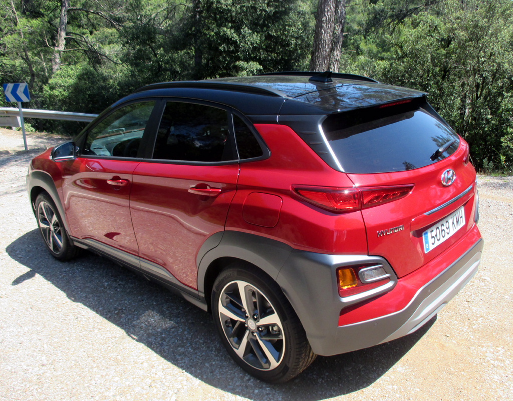 Das Auto: Beim Kona, benannt nach einem Distrikt auf Hawaii, handelt es sich um das jüngste und kleinste SUV-Modell der Koreaner nach dem Santa Fe und Tucson. Es tritt, solide verarbeitet, für die Kleinwagen-Klasse recht wertig anmutend, knapp 4,2 Meter lang, Radstand 2,6 Meter, Kofferraum 361 bis 1143 Liter und leicht bedienbar, im Robust-Look mit markanten Beplankungen, angedeutetem Unterfahrschutz sowie Möglichkeit der Zweifarblackierung im Umfeld etwa von Ford EcoSport, Renault Captur, Seat Arona oder VW T-Roc an. Schwestermodell im Konzern ist der Kia Stonic.