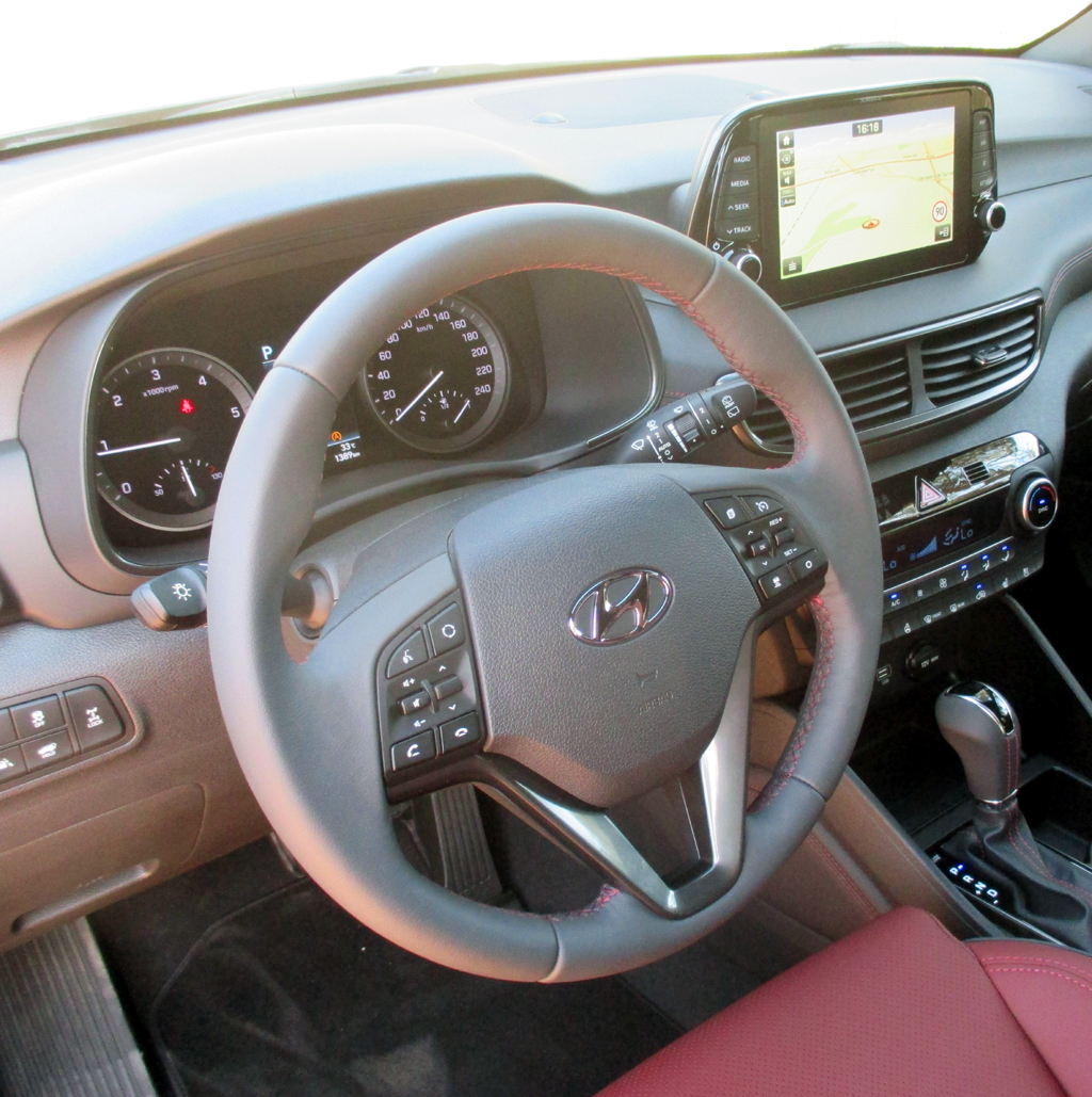 Das Auto: Seit 2015 wieder als Tucson auf dem Markt, nachdem er zwischenzeitlich als ix35 firmierte, hat Hyundai im Rahmen der Modellpflege nun die Optik des fünftürigen Fünfsitzers geschärft, Front- und Heckpartie modifiziert. Er kommt auf knapp 4,5 Metern Länge solide verarbeitet daher, mutet für die untere Mittelklasse standesgemäß an. Platz ist bei fast 2,7 Metern Radstand selbst im Fond noch ordentlich vorhanden. Das Gepäckabteil fasst stattliche 513 bis 1503 Liter. Die Bedienung im recht übersichtlichen Cockpit ist rasch im Griff. Neu ist der Instrumententräger mit freistehendem Monitor. Das Armaturenbrett ist mit angenehmen Softtouch-Oberflächen überzogen.