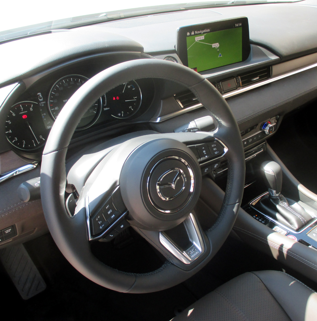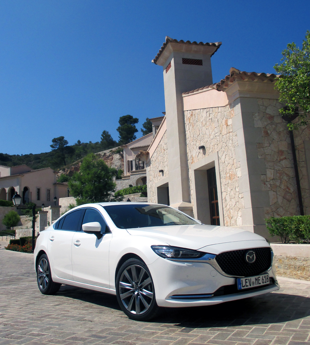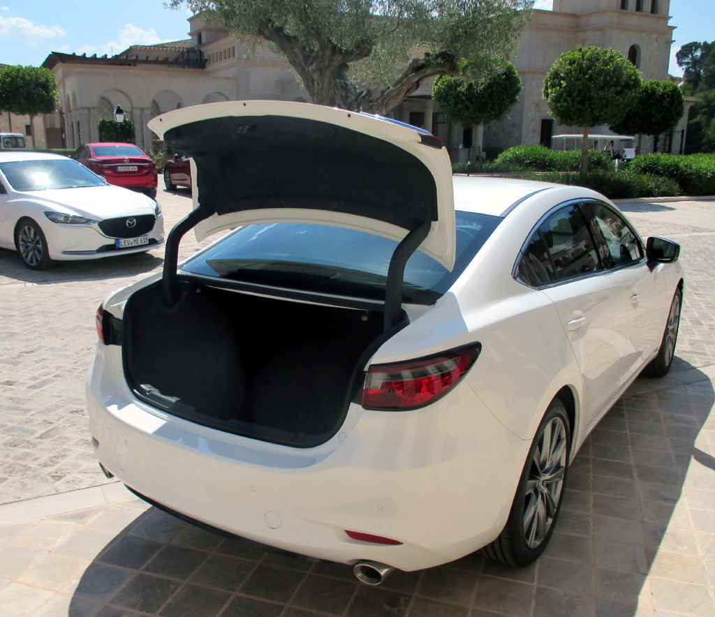 Das Auto: Mazdas Flaggschiff kommt auf bis fast 4,9 Metern Länge nach wie vor solide verarbeitet daher, mutet für die Mittelklasse im Vergleich mit den Volumenkonkurrenten standesgemäß an. Die Front wirkt kraftvoller. Der optische Schwerpunkt liegt tiefer. Das Heck hat sich leicht geändert. Die Sitze verfügen im neuen Interieur über dickere Polster und breitere Flächen. Platz ist bei bis zu 4,8 Metern Radstand selbst im Fond ordentlich vorhanden. Das Limousine-Stauabteil fasst 480, das des kürzeren, aber nutzwertigeren Kombi 522 bis 1664 Liter. Im längst übersichtlicheren Cockpit fällt die Bedienung leicht.
