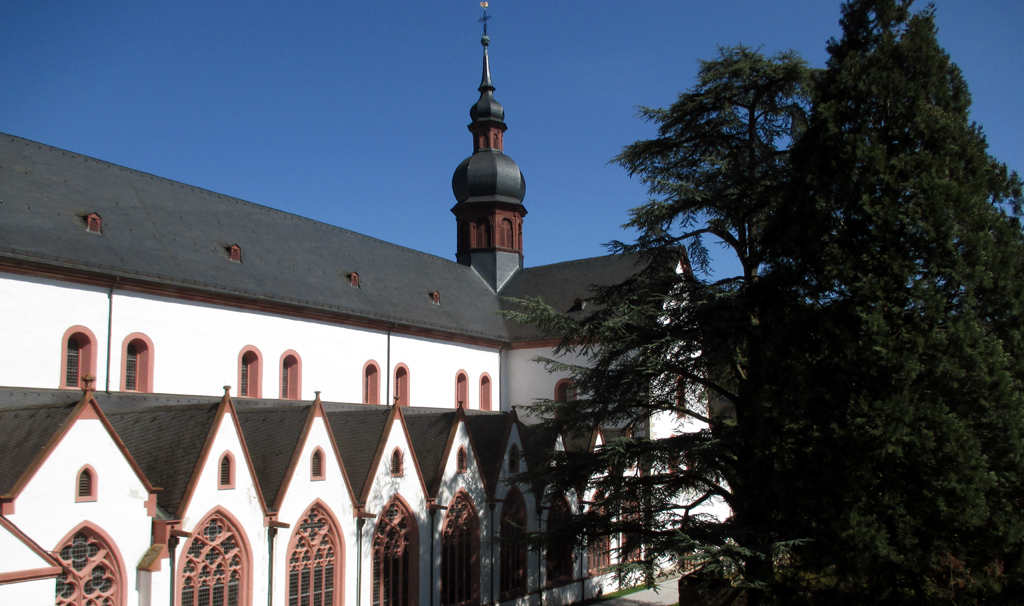 Eberbach (links) mit angrenzendem Staatsweingut gilt als eine der besterhaltenen Klosteranlagen aus dem Mittelalter. Mitte der 1980er-Jahre sind hier die Innenaufnahmen zur Verfilmung von Umberto Ecos „Der Name der Rose“ gedreht worden. In der Nähe hat Fiat vor zwei Jahren übrigens national seinen 124 Spider vorgestellt, den wir jetzt in der ab 26 990 Euro teuren Lusso-Variante in Vesuvio-Schwarz-Metallic mit Sechsgang-Handschaltgetriebe gefahren haben.