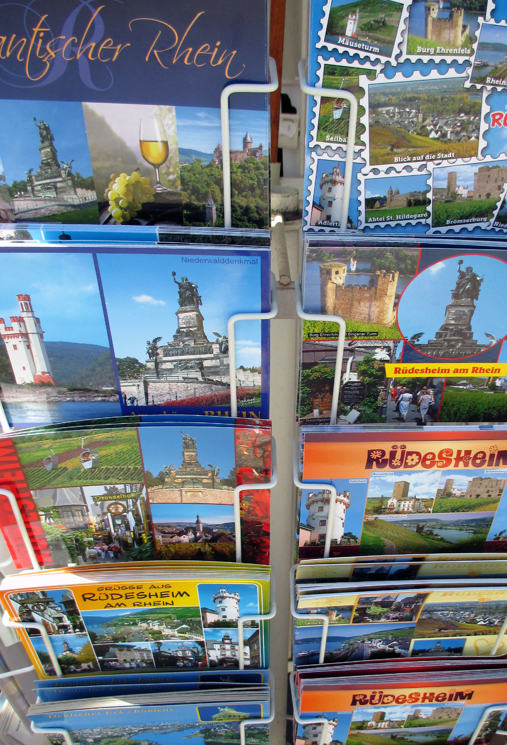 Zum Rheingau gehört, wie ebenfalls auf diesen Ansichtskarten (links) am Niederwalddenkmal zu sehen, Germania, die Wacht am Rhein oberhalb von Rüdesheim. Noch eine Aufnahme des flotten Italieners am großen Strom der Deutschen, dem Rhein, das muss sein! Wofür sich der Fiat 124 Spider am besten eignet? Bei schönem Wetter openair über kurvige Landstraßen zu cruisen! Da stört neben dem geringen Platzangebot auch die etwas lautere Geräuschkulisse kaum.