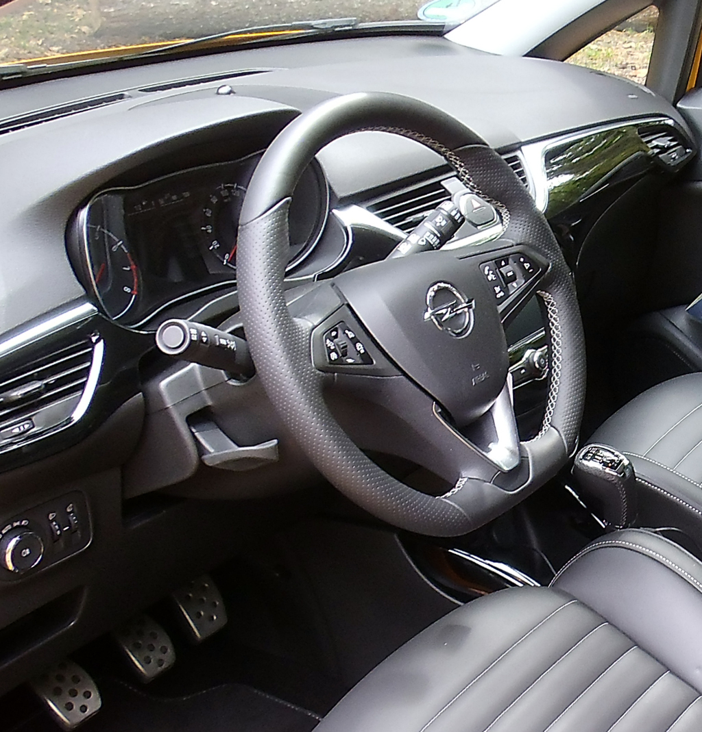Das Fahren: Dank feinfühliger und dennoch spurgenauer Lenkung punktet der Sport-Corsa mit dynamischem Handling, das zur permanenten Leistungsanforderung anspornt. Alle wichtigen Assistenzsysteme sind Standard an Bord. Leider fehlt eine Differenzialsperre. Der große Heckspoiler sorgt für zusätzlich Abtrieb auf der Hinterachse, was zu einem ausgewogeneren Fahrverhalten des Wagens auch in Grenzsituationen beiträgt. Gut gefallen haben uns das griffige, unten abgeflachte Lederlenkrad sowie die übersichtliche Armatureneinheit im Cockpit. Allerdings sollte die Vielzahl der Bedienelemente am Lenkrad auf den Prüfstand. Auch auf ein hohes Maß an Vernetzung muss der engagierte Sportfahrer nicht verzichten. Auf Wunsch ist das Infotainment-System IntelliLink vorhanden und damit die Teilnahme an der Smartphone-Welt möglich.