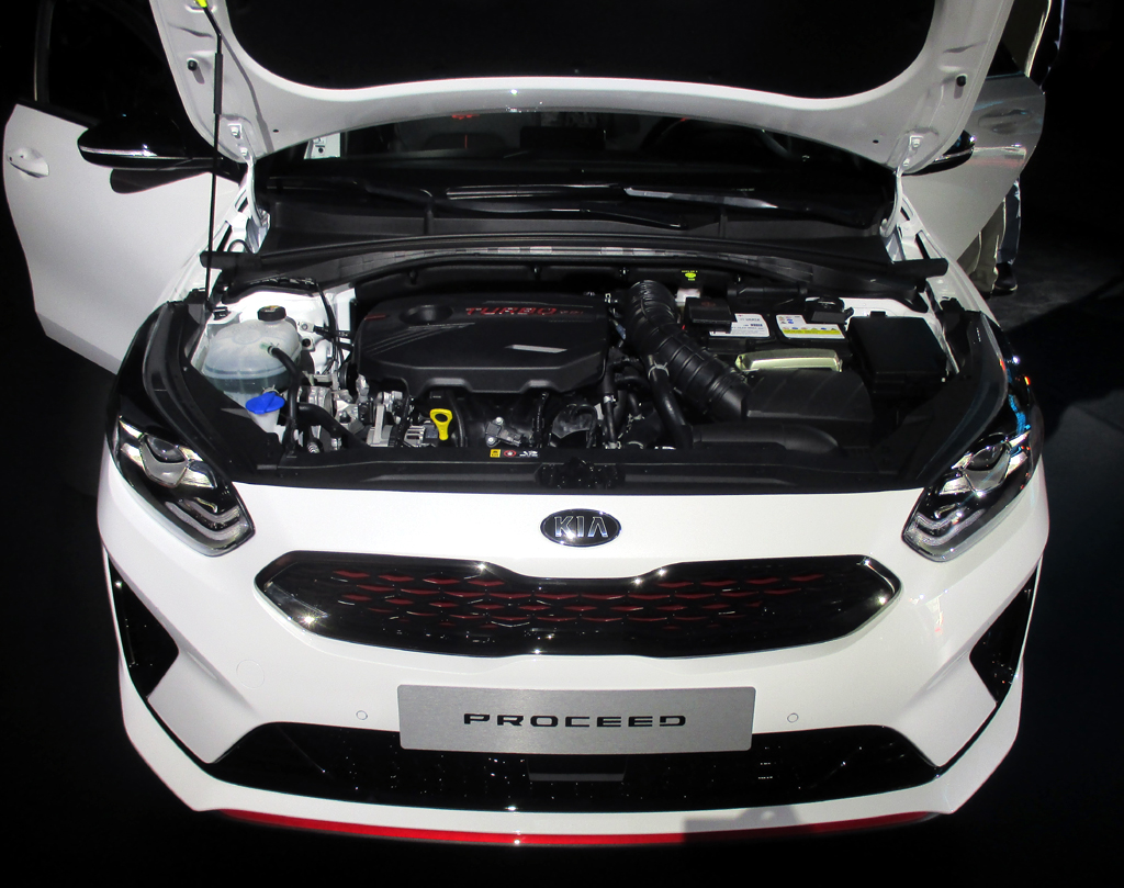 Der Antrieb: Zwei Turbobenziner und ein Turbodiesel sind vorgesehen, alle nach der neuen Abgasnorm Euro-6d-Tep eingestuft, die Benziner mit Partikelfilter, der Diesel mit spezieller Abgasreinigung versehen. Der 1,4-Liter-Benziner mit 140 PS und der neue 1,6-Liter-Diesel mit 136 PS sind schon aus den Schwestermodellen bekannt und ab Werk mit Sechsgang-Schaltgetriebe kombiniert. Gegen Aufpreis ist das komfortablere Siebengang-Doppelkupplungsgetriebe zu haben. Wie der ebenfalls in Barcelona präsentierte neue Ceed GT hat der Shooting Brake als GT einen 1,6-Liter mit 204 PS unter der Haube. Die optionale Doppelkupplungsbox verfügt über Normal- und Sport-Einstellmöglichkeit.