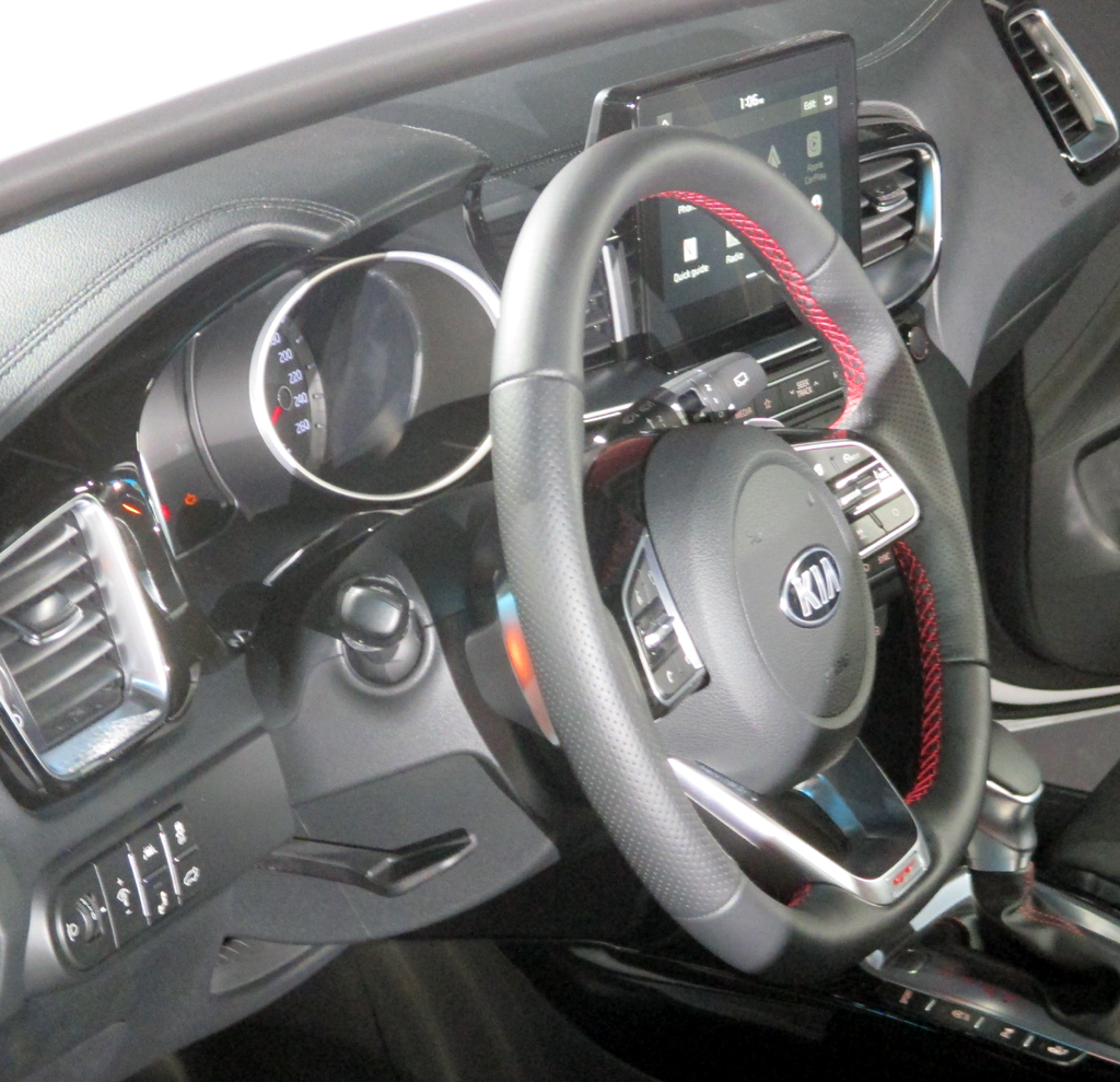 Das Fahren: Das Fahrwerk haben die Koreaner nach eigenen Angaben „voll auf europäische Straßenverhältnisse“ zugeschnitten, was bei der sportlicheren Charakteristik eine etwas straffere Auslegung meint. Kia verspricht „schnelle, direkte Rückmeldung und besonders gute Kurvenkontrolle“ sowie „Reisekomfort und Fahrstabilität bei höheren Geschwindigkeiten, die man von einem Shooting Brake mit ‚Grand Tourer‘-Karosserie erwartet“. Beim leistungsstärkeren GT sollen straffere Federn die Kontrolle der Karosserie und die Rückmeldung der Lenkeingaben verbessern, weichere Stabilisatoren den Fahrbahnkontakt der Innenräder auch in scharfen Kurven bestmöglich sicherstellen. Bei der Lenkung selbst handelt es sich um eine elektronisch unterstützte.