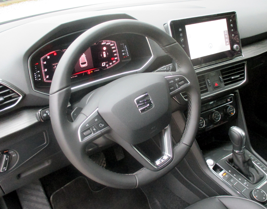 Das Auto: Bei dem gefälligen und überaus geräumigen Tarraco, sauber verarbeitet, für die höhere Mittelklasse recht wertig anmutend, 4,73 Meter lang, Radstand 2,79 Meter, Kofferraum je nach Konfiguration 760/700 bis 1920 Liter, variablem Boden und relativ niedriger Ladefläche, handelt es sich nach dem kleinen Arona und dem kompakten Ateca schon um das dritte SUV der Spanier. Es läuft in Wolfsburg vom Band. Front und Heck weisen die Verwandtschaft auf Konzernebene aus. Auch innen alles wie gehabt bei Volkswagen. Man sitzt höher. Die Rundumsicht ist gut. Alle Bedienelemente finden sich da, wo sie hingehören. Die Eingewöhnung in die Digitalität des so auch übersichtlicheren Cockpits mit zwei acht und über zehn Zoll großen Displays ist rasch im Griff.