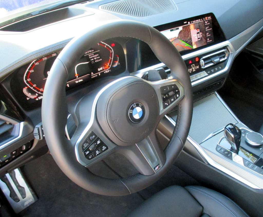 Unter der Haube des 330i ist der 258-PS-Benziner am Werk. Das Cockpit bleibt sportlich funktionell.