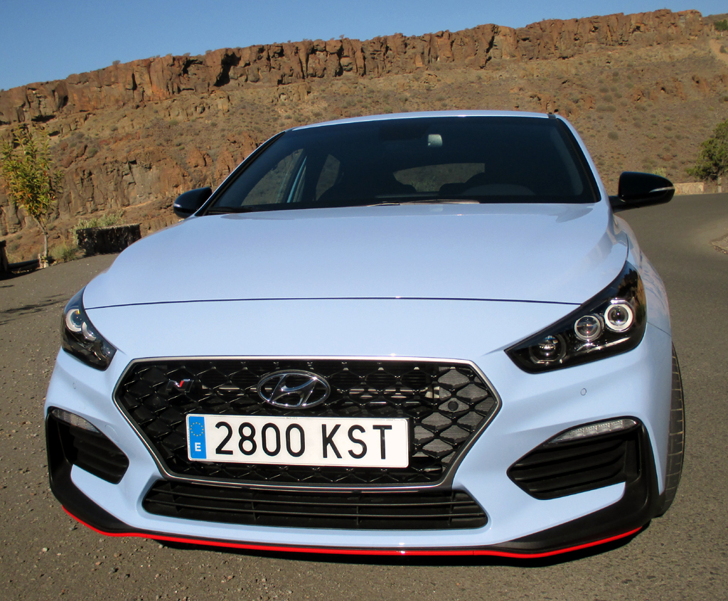 Das Fahren: Wir sind im N-Performance unterwegs gewesen, dessen Bordcomputer bei uns im Normalbetrieb am Ende nach eher moderaten Landstraßen- und Autobahnfahrten über die Kanaren-Insel 8,9 Liter angezeigt hat. Das straffere Sportfahrwerk ist schon im N mit adaptiven Dämpfern kombiniert, übertreibt es, gut für längere Fahrten, so auch mit der Härte nicht, lässt sich freilich ebenso wie Motor, elektrisch unterstützte Servolenkung und Soundgenerator mit den Modi Sport- oder Sport+ nachschärfen. Besonderheit beim mit spezieller Brems- und Sportabgasanlage mit variabler Klappensteuerung bestückten N-Performance ist das elektronisch geregelte Sperrdifferenzial, das für bestmögliche Kraftverteilung auf die Antriebsräder sorgt, so dass der Wagen in Kurven kaum unter- oder übersteuert. Die Scheibenbremsen, vorn innenbelüftet, packen standfest zu. Die Zwischengas-Funktion unterstreicht den sportlichen Gesamteindruck des Kraftpakets.