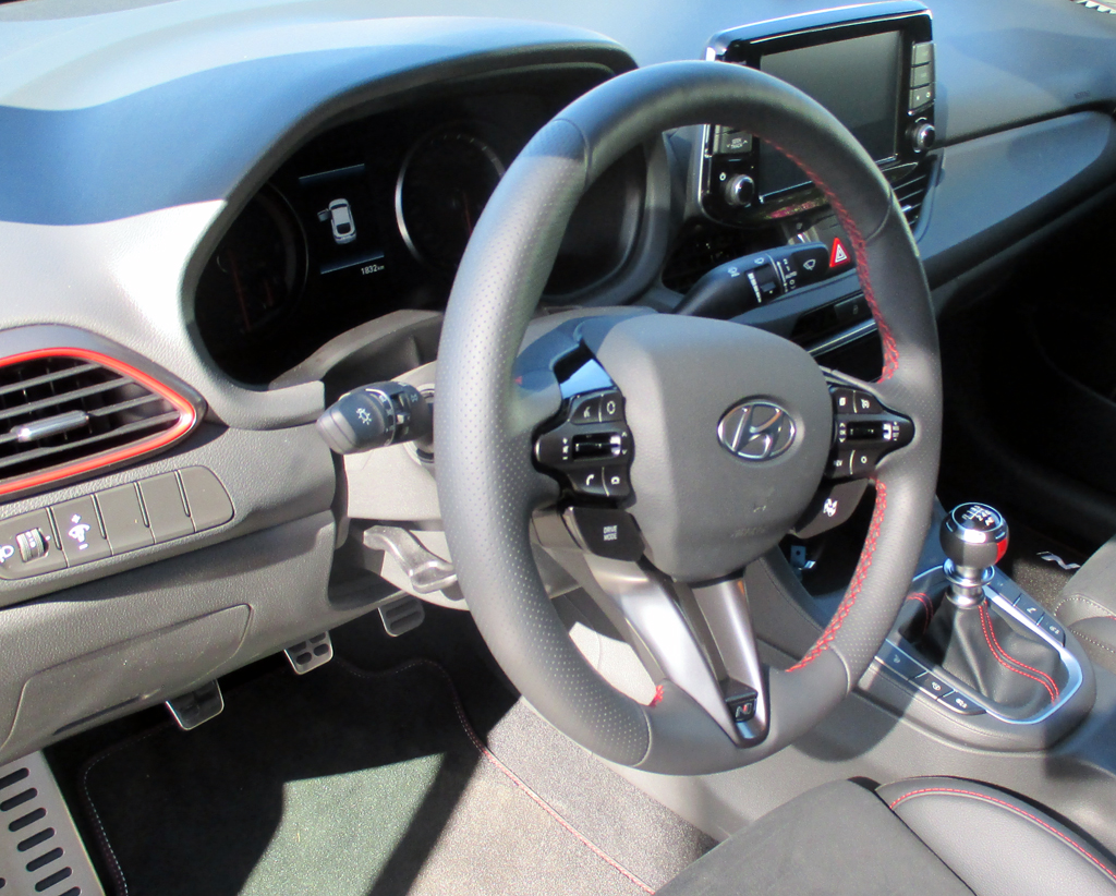 Das Auto: Der sauber verarbeitete und recht wertig anmutende Fastback ist mit 4,45 Metern etwas länger, zudem flacher, verfügt mit 2,65 Metern über denselben Radstand, besitzt mit 450 bis 1351 Litern aber ein viel geräumigeres Gepäckabteil. Er stellt im Kompaktsegment das erste Hochleistungsmodell auf Basis eines fünftürigen Coupés dar, baut auf dem i30-Fünftürer auf, läuft wie der in Tschechien vom Band. N steht für die Entwicklung in Namyang in Korea sowie die Erprobung auf dem Nürburgring samt Nordschleife und spezieller N-Schikane dort. Von der Frontschürze mit vergrößerten Lufteinlässen über Seitenschweller, Zierleisten und lackierte Bremssättel bis hin zu Heckspoiler, Diffusor und zweiflutiger Abgasanlage deutet auch das Fließheck außen schon an, was in ihm steckt, setzt lediglich innen den einen oder anderen eigenen Akzent, wo es von den Sitzen über das Lederlenkrad ebenfalls mit Kontrastnähten bis zu den Pedalen freilich ebenso sportlich-funktionell zugeht. Die Bedienung ist rasch im Griff.