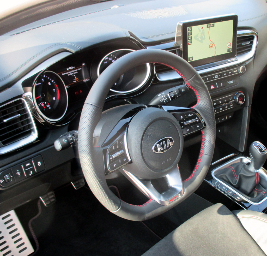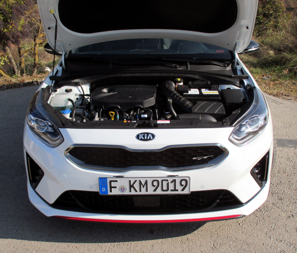Der Antrieb: Unter der Haube ist der auch für den neuen ProCeed angebotene 1,6-Liter-Turbobenziner mit 204 PS am Werk. Dessen durchzugsstärkere 265 Newtonmeter stehen über ein breites Drehzahlband schon ab 1500 bis 4500 Touren zur Verfügung. Der Vierzylinder mit Partikelfilter, eingestuft bereits nach der strengeren Abgasnorm Euro-6d-Temp, beschleunigt den leer je nach Norm um die 1400/1500 Kilo schweren GT in um die siebeneinhalb Sekunden aus dem Stand auf Tempo 100, schafft je nach Getriebe – Sechsgang-Handschalter oder Siebenstufen-Doppelkupplungsbox – in der Spitze bis Tempo 230/225. Was den Verbrauch betrifft, geben die Koreaner in Verbindung mit der spritsparenden Stopp/Start-Funktion bis zu 6,8 Liter an. Für die komfortablere Automatik finden sich dagegen maximal nur 6,2 Liter so zumindest im Datenblatt.