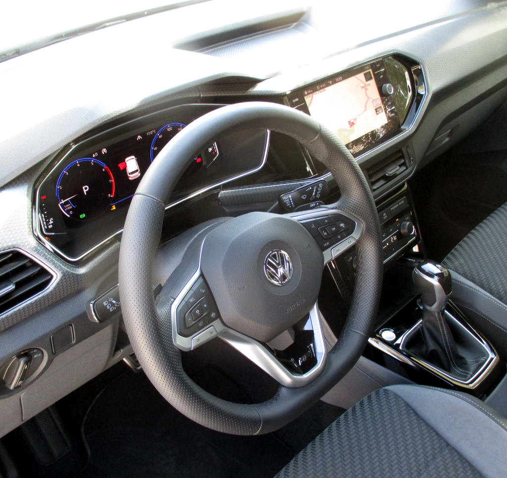 Das Auto: Der in Spanien vom Band laufende, sauber verarbeitete und trotz teilweise Hartplastik für die Kleinwagenklasse noch relativ wertig anmutende T-Cross baut auf dem Polo auf, übertrifft diesen mit 4,11 Metern aber in der Länge und mit 1,58 Metern auch in der Höhe. Platz ist bei 2,55 Metern Radstand selbst im Fond des für fünf Personen ausgelegten, umfangreicher individualisierbaren kleineren T-Roc-Bruders noch ordentlich vorhanden. Ein- und Ausstieg gestalten sich bequem. Ältere dürften aber die Haltegriffe am Dachhimmel vermissen. Man sitzt höher, genießt bis auf die breitere C-Säule hinten ganz gute Rundumsicht. Das Gepäckabteil fasst 385/455 Liter, vergrößert sich mittels verschieb- und umklappbarer Rückbank auf 1281 Liter. Schade, dass beim Nach-Vorn-Schieben eine Lücke zwischen Bank und Kofferraum entsteht! Im übersichtlichen Cockpit ist die Bedienung samt Touchscreen dank rasch durchschaubarer Logik bald im Griff.