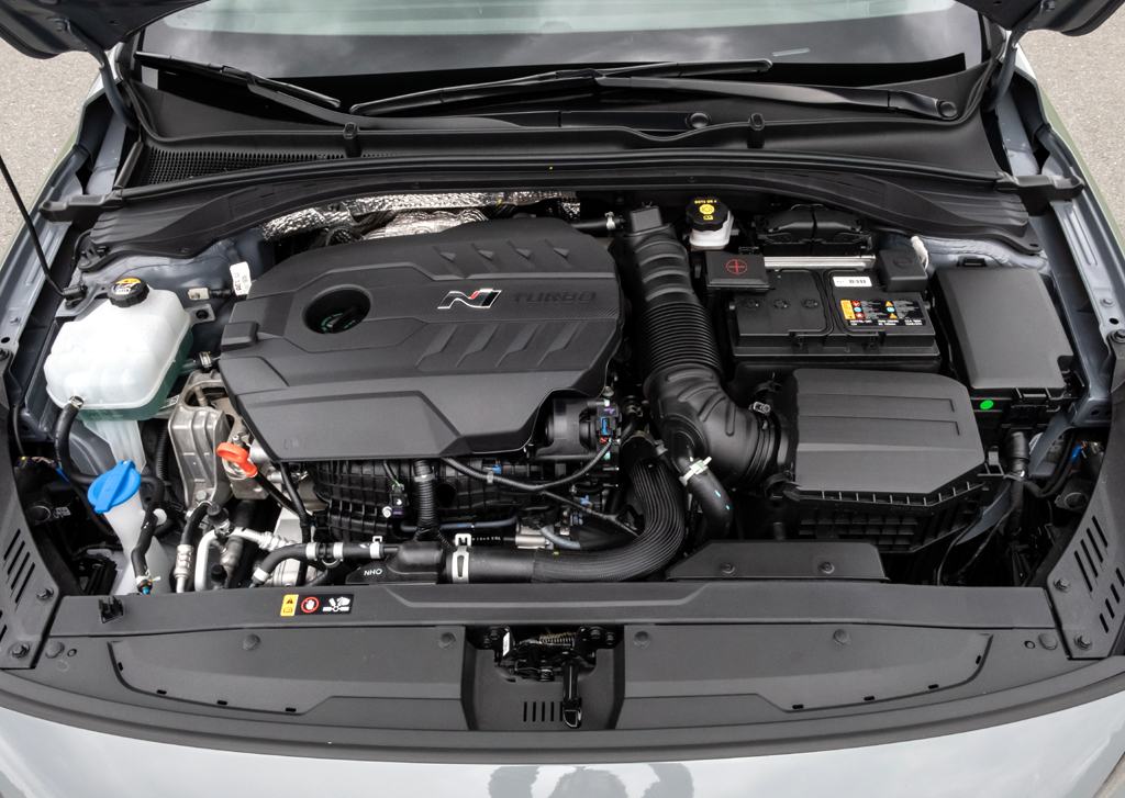 Blick unter die Haube auf den aufgeladenen Vierzylinder im Fließheck-i30 Fastback N.