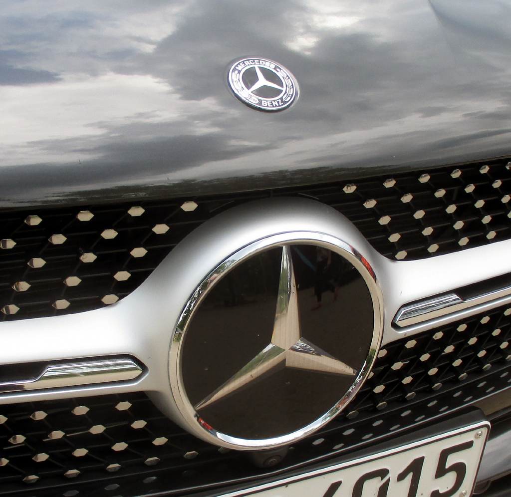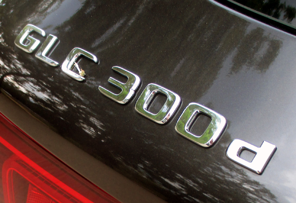 Mercedes GLC, hier als 245-PS-Diesel 300d, mit Markenstern(en) und dem Markenlogo vorn.