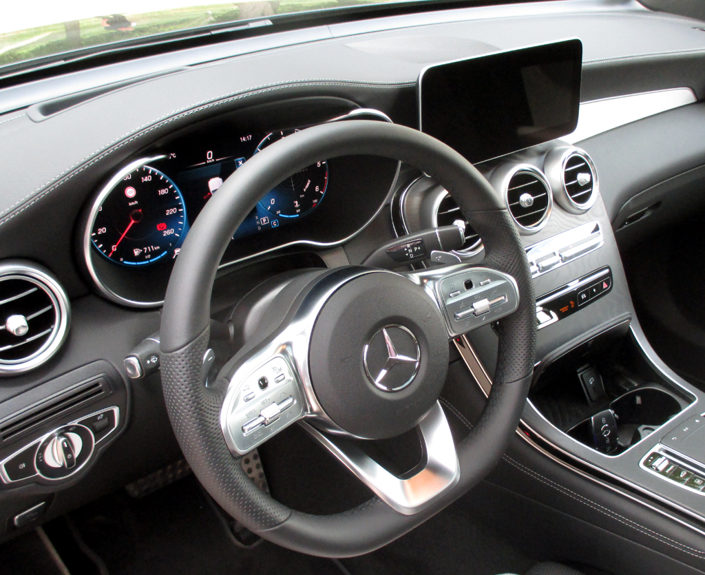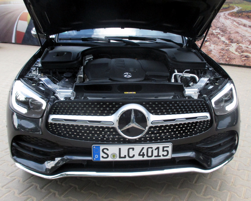 Das Fahren: Wir sind im 245-PS-Diesel-GLC und 510-PS-AMG-Benziner-Coupé unterwegs gewesen, deren Bordcomputer uns nach wechselnden Fahrprofilen 6,5 (statt maximal 5,9) und 13,4 (statt maximal 12,3) Liter angezeigt haben. Das Serienfahrwerk ist auf höheren Komfort, das mit Stahlfederung und verstellbaren Dämpfern auf sportlicheres Fahren, das mit Luftfederung auf gut ausgewogene Balance zwischen Komfort und Agilität ausgelegt. In bestimmten Situationen ist teilautomatisiertes Fahren möglich, Elektronikhilfen passen dann das Tempo an, unterstützen beim Lenken, bei Spurwechsel und Kollisionsgefahr. Das Assistenzpaket beinhaltet Umfänge aus der S-Klasse. Sogar schwierigeres Gelände wie das im ADAC-Offroadzentrum Bauschheim meistern GLC und GLC Coupé, die Lasten von 2,0 bis 2,5 Tonnen an den Haken nehmen können, souverän,