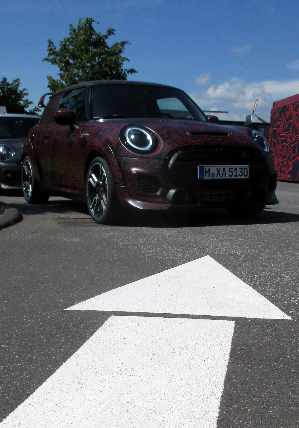 Noch getarnt, auch wenn es kaum nötig sein dürfte: Mini-Prototyp John Cooper Works GP. Foto: Koch