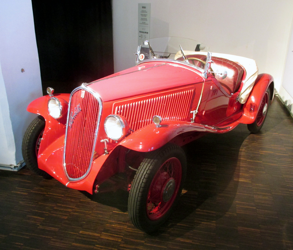Ein altes Markenlogo von Fiat, das den 508 CS Balilla Coppa d’Oro aus dem Jahr 1934 ziert.