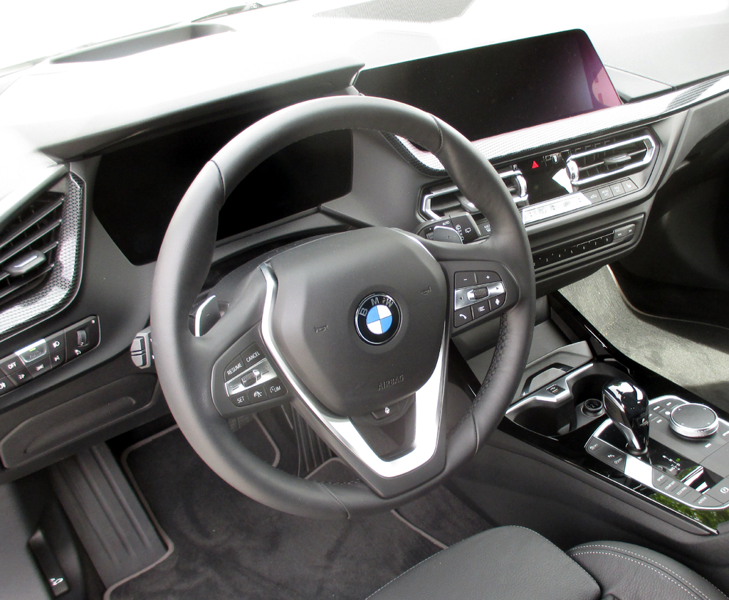 Die Ausstattung: Die vier Lines über dem Basismodell heißen Advantage, Sport, Luxury und M-Sport mit jeweils speziellen Serienumfängen. Auffahr-, Personenwarnung, City-Notbremsfunktion und Spurverlassenswarnung mit aktiver Rückführung gehören zu den Standards, Aktivtempomat, Spurwechsel-, Heckkollisions-, Querverkehrswarnung und Rückfahrassistenz kommen als mögliche Optionen hinzu. Der M fährt unter anderem mit LED-Scheinwerfern, Zweizonen-Klimaautomatik, Parkabstandskontrolle, dazu mit Aerodynamikpaket, mit Seitenschwellern, Heckdiffusor, Heckspoiler, Endrohren auf beiden Seiten sowie Sportsitzen und spezifischem Lenkrad vor. Erstmals sind elektrisches Panoramadach und elektrisch bedienbare Heckklappe zu haben. Mit Digitalschlüssel lässt sich der 1er per Smartphone entriegeln und schließen. Der Motor ist startbar, wenn das Smartphone in der dafür vorgesehenen Ablage liegt. Ein intelligenter Digitalhelfer merkt sich Abläufe, bevorzugte Einstellungen und Gewohnheiten, speichert sie für sich ab. Vernetzte Dienste beziehen interne und externe Informationen in die Routenplanung ein. Aus verschiedenen Apps können nun Ziele direkt an den Wagen geschickt werden.