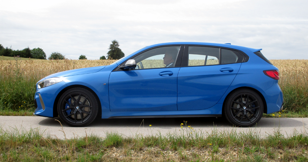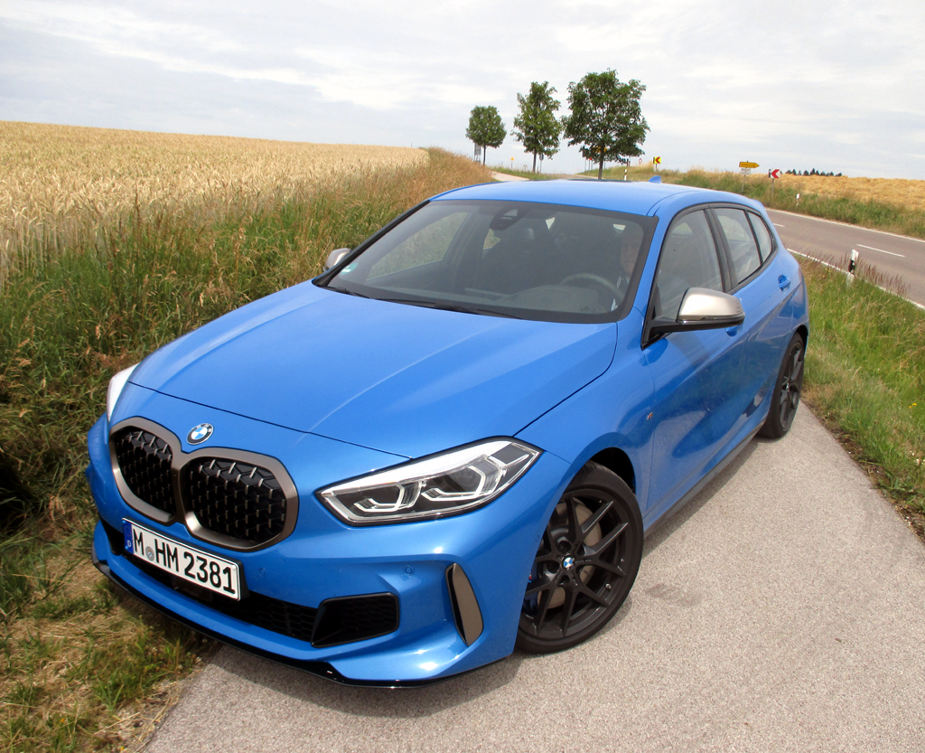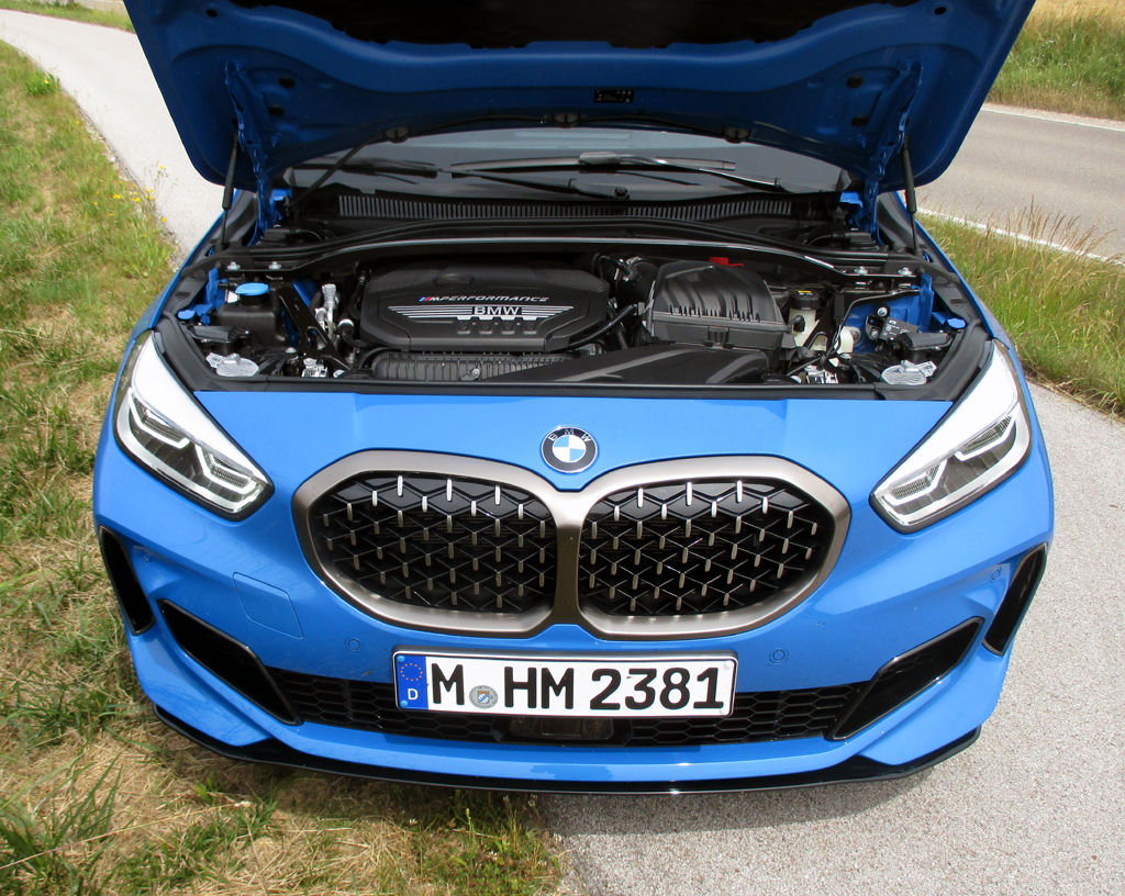 Das Auto: Die dritte Generation, 4,31 Meter lang, Radstand 2,67 Meter, Kofferraum 380 bis 1200 Liter, 20 mehr als zuvor, baut erstmals auf der Frontantriebsarchitektur der Münchner auf, wird aber nur noch als Fünftürer angeboten, weil der praktischer ist. Die Doppelniere vorn ist größer geworden, die beim Spitzenmodell M135i xDrive weist statt klassischer Stäbe ein dreidimensional gestaltetes Gitternetz auf. Die Frontscheinwerfer sind schräg angestellt. Sharknose, angedeutete Keilform und flache Fenstergrafik prägen die Seitenansicht. Die breiten, zweiteilig ausgeführten Heckleuchten verstärken die Wirkung der kräftigeren hinteren Schulterpartie. Das Raumangebot fällt bei fast gleicher Grundfläche besonders im Fond deutlich besser aus, wo Ellbogen- und Kniefreiheit zugelegt haben. Im gewohnt sportlich-funktionellen Cockpit geht es übersichtlich zu.