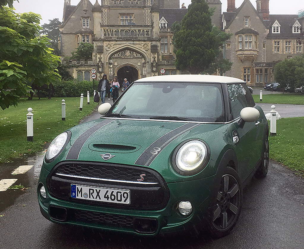 Gleich dreimal very british: Das Wetter, das historisches Gebäude hinten, der Mini Cooper S vorn. Fotos: Waldinger