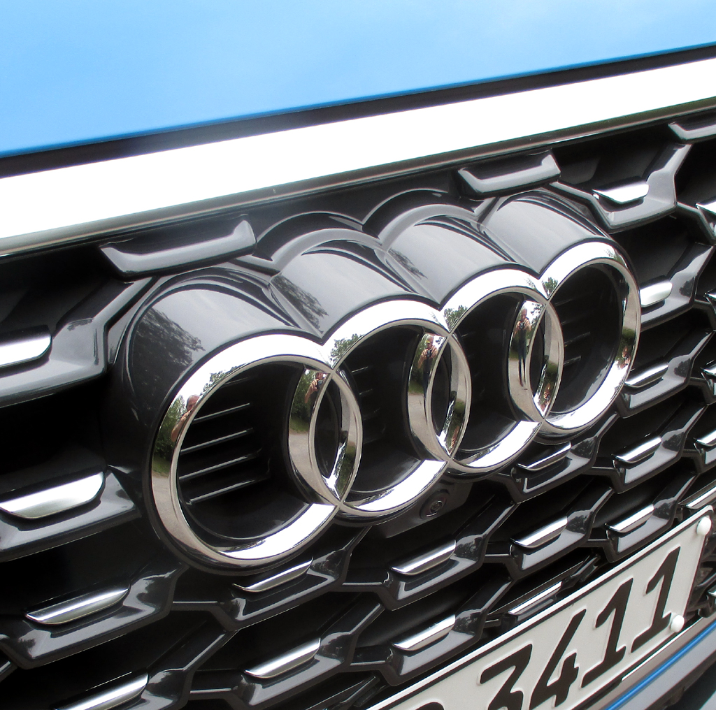 Der achteckige Kühlergrill mit schwarzem Gitter und den Markenringen prägt die Frontpartie.