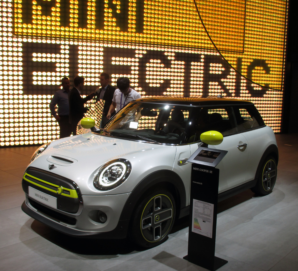 Umweltschützer demonstrieren vor der Messe. Der Elektro-Mini Cooper SE kommt Anfang 2020 auf den Markt.