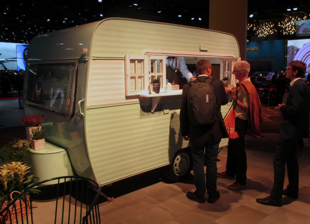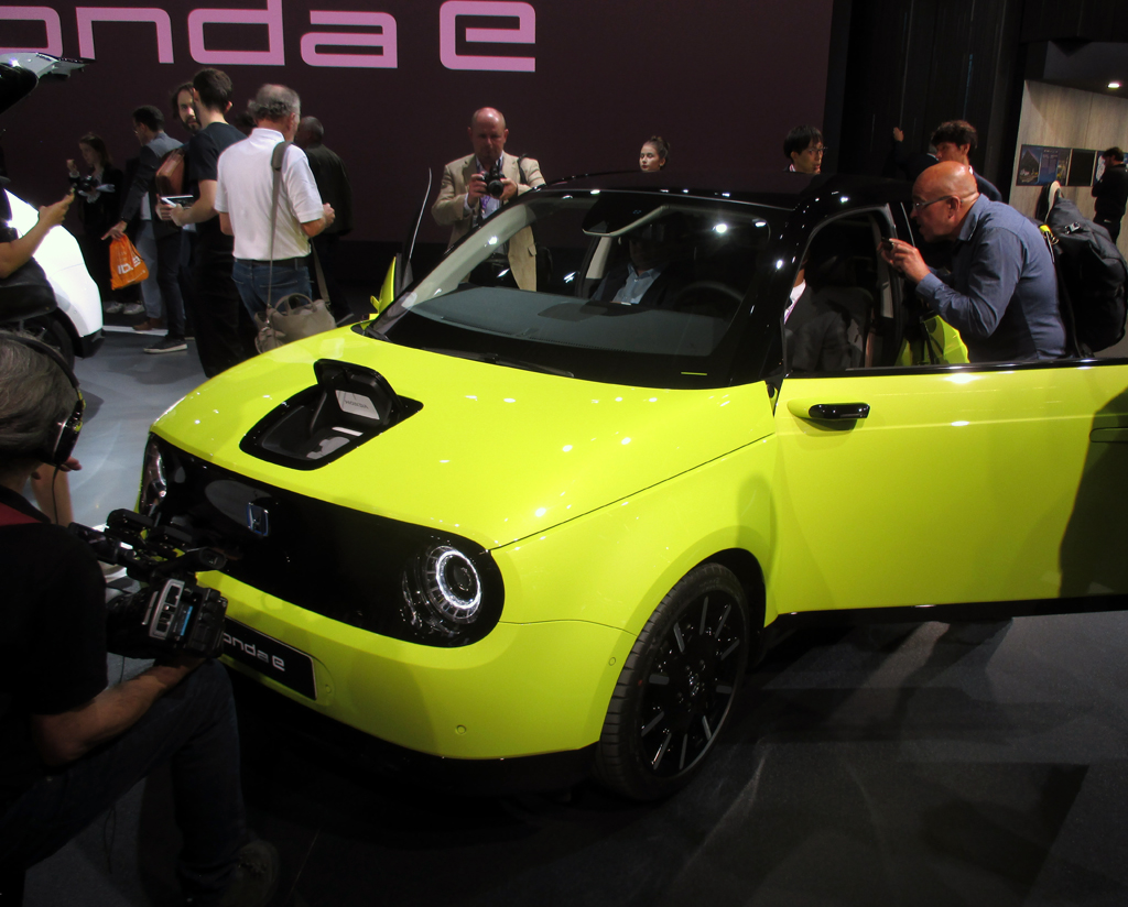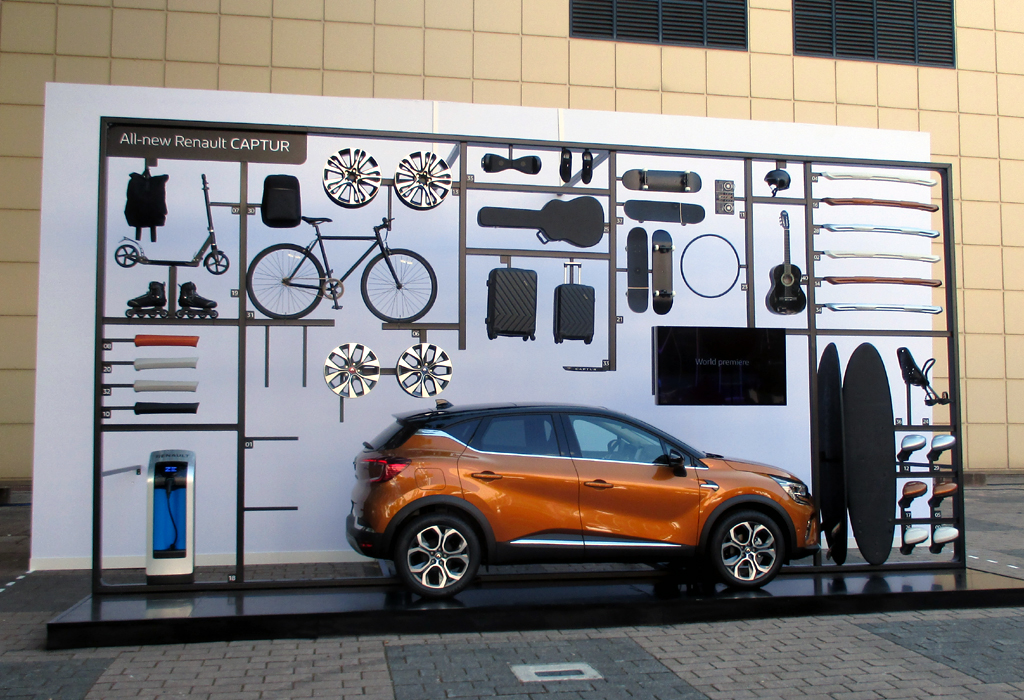 In einer Ausstellungswand im Freien präsentiert Renault den Captur. Honda setzt auf den kompakten Stromer Honda-e.