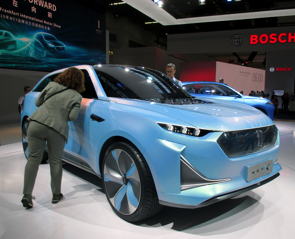 Wey aus China hat seinen Wey-X-SUV mitgebracht. Auch nostalgisch geht es bisweilen auf der IAA zu.