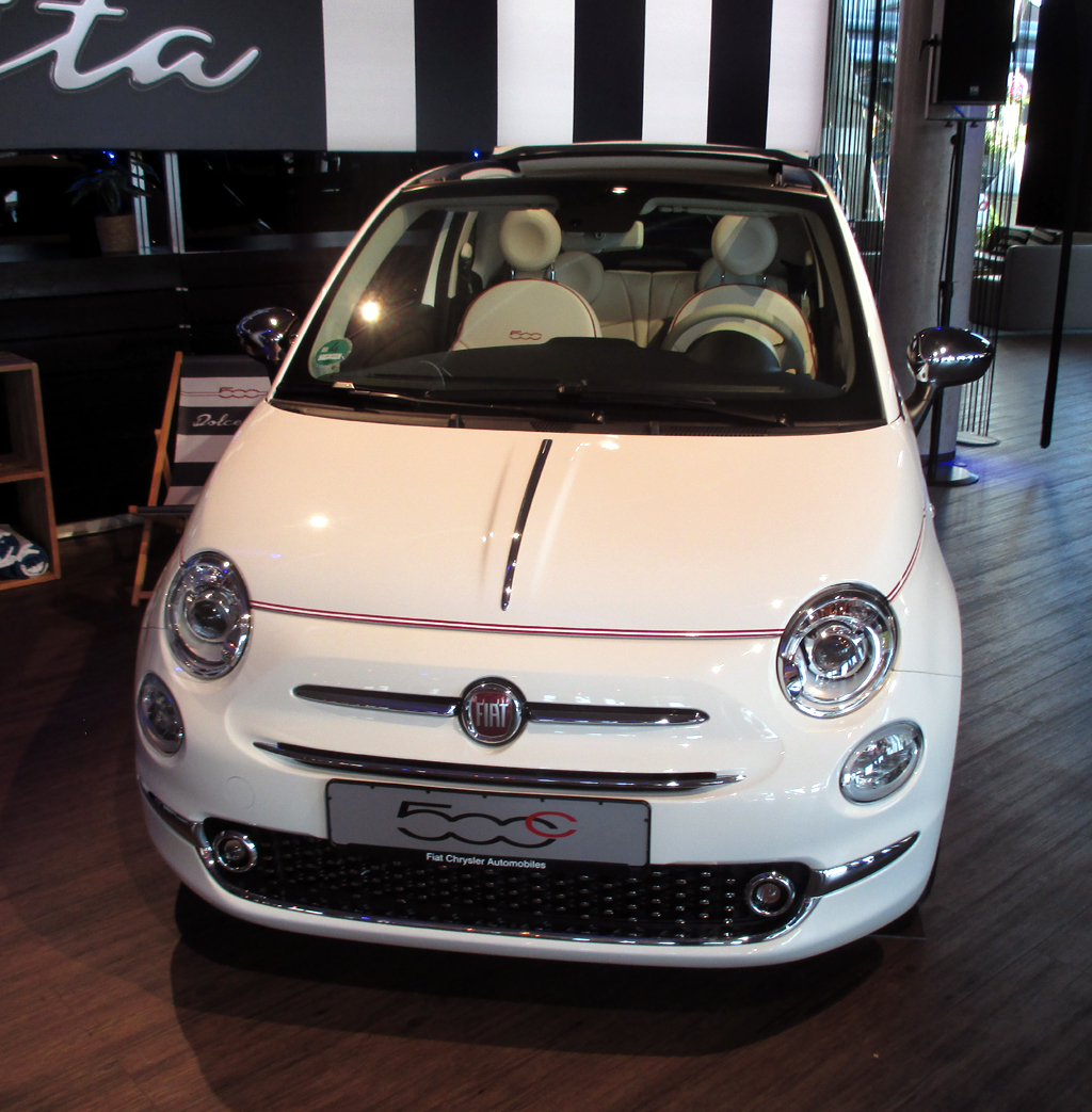 Seit 2007 ist das dreitürige Schrägheck im Retro-Look mit vier Sitzen auf dem Markt, tritt in der Kleinstwagenklasse etwa gegen Renault Twingo oder VW Up an. Auf über 30 Sondermodelle kommt die Einstiegsbaureihe in den mittlerweile zwölf Jahren nun schon, zu der neben dem normalen 500, der preislich bei 12 990 Euro startet, auch der 500X und der 500L gehören. Sie ist laut Jablonska europaweit Marktführerin in ihrem Segment und mit inzwischen über drei Millionen Einheiten insgesamt sogar die meistverkaufte bei Fiat Chrysler Automobiles. Alle Sondermodelle seien ikonische Automobile, so Jablonska, ermöglichten es, dem Fiat 500 neue Kundenkreise zu erschließen, diesmal sogar mit einer ausschließlich hauseigenen Entwicklung. Der Dolcevita, ebenfalls 3,57 Meter lang, Radstand 2,30 Meter, Kofferraum 185-550/165-530 Liter, stehe für den authentischen italienischen Stil, der mit den La-dolce-vita-Jahren in Verbindung gebracht werde.