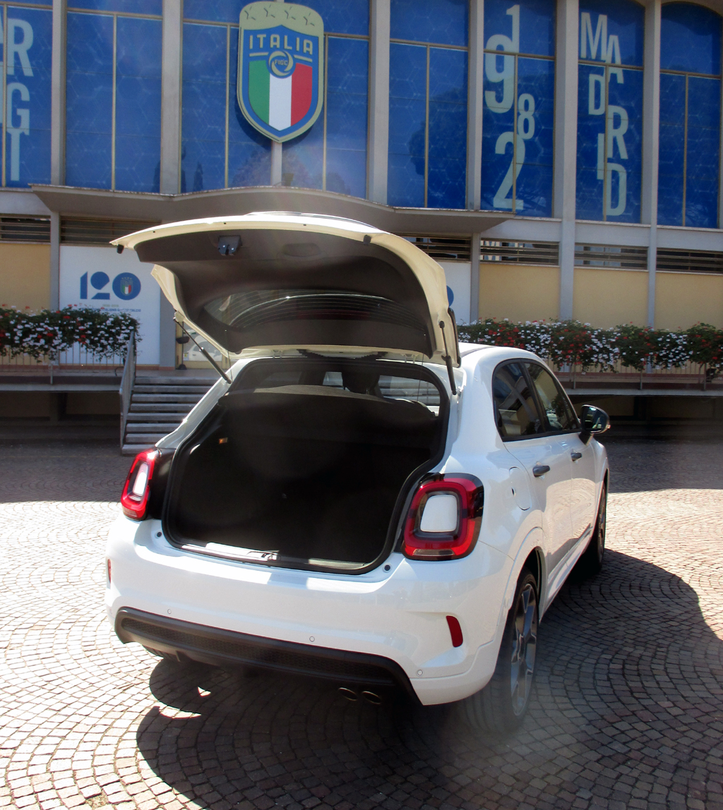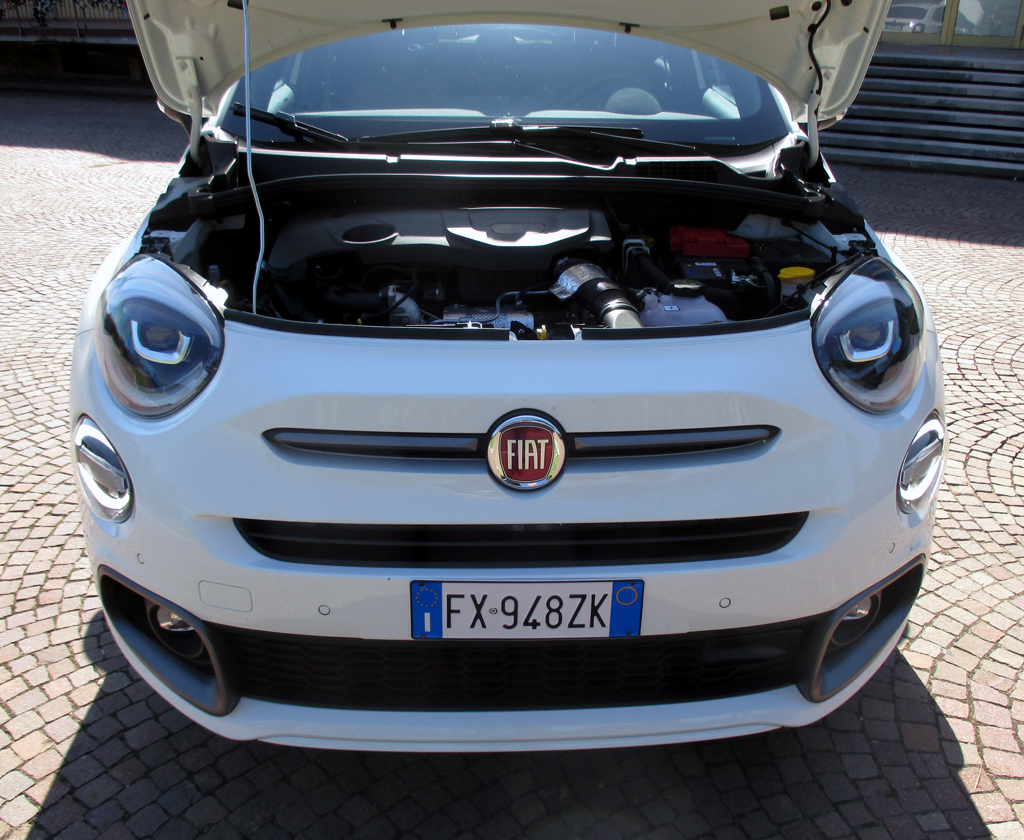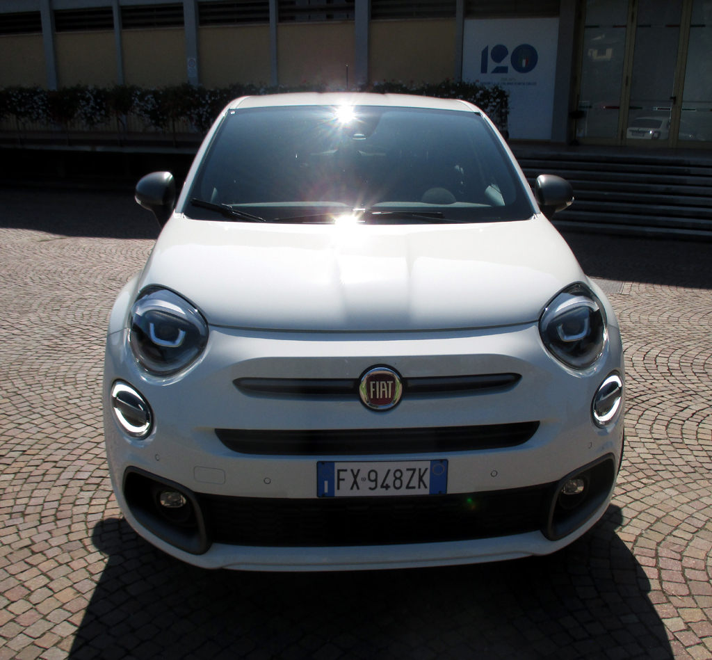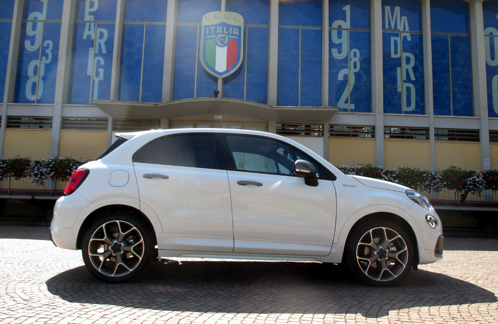 Die Ausstattung: Serie sind etwa Haupt-/Nebelscheinwerfer mit LED-Technologie und Möglichkeit einer personalisierten Lichtsignatur, dazu seitliche Schürzen, in Wagenfarbe lackierte Kotflügeleinsätze, der als Diffusor ausgeformte Stoßfänger hinten, Abgasanlage mit Doppelendrohr, Klimaautomatik, Sitze aus schwarzem Stoff und schwarzem Vinyl, verziert mit grauen und roten Nähten, sowie 18-Zoll-Leichtmetallräder mit 225er-Reifen. Wer will, kann 19-Zöller mit glänzend schwarzer Nabenkappe, edlere Alcantara-Bezüge für Sportlenkrad und Armaturentafel-Verkleidung mit rot abgesetzen Nähten, schwarze Ledersitze oder aus Aluminium gefertigte Pedale ordern. Einige Farben lassen sich mit schwarzem Dach kombinieren. Alle 500X Sport haben Spurhalteassistenz, Tempomat mit Geschwindigkeitsbegrenzung, Verkehrszeichenerkennung und Rückfahrkamera an Bord. Das Siebenzoll-Touchscreen-Entertainment hat Navigation und Smartphone-Einbindung.