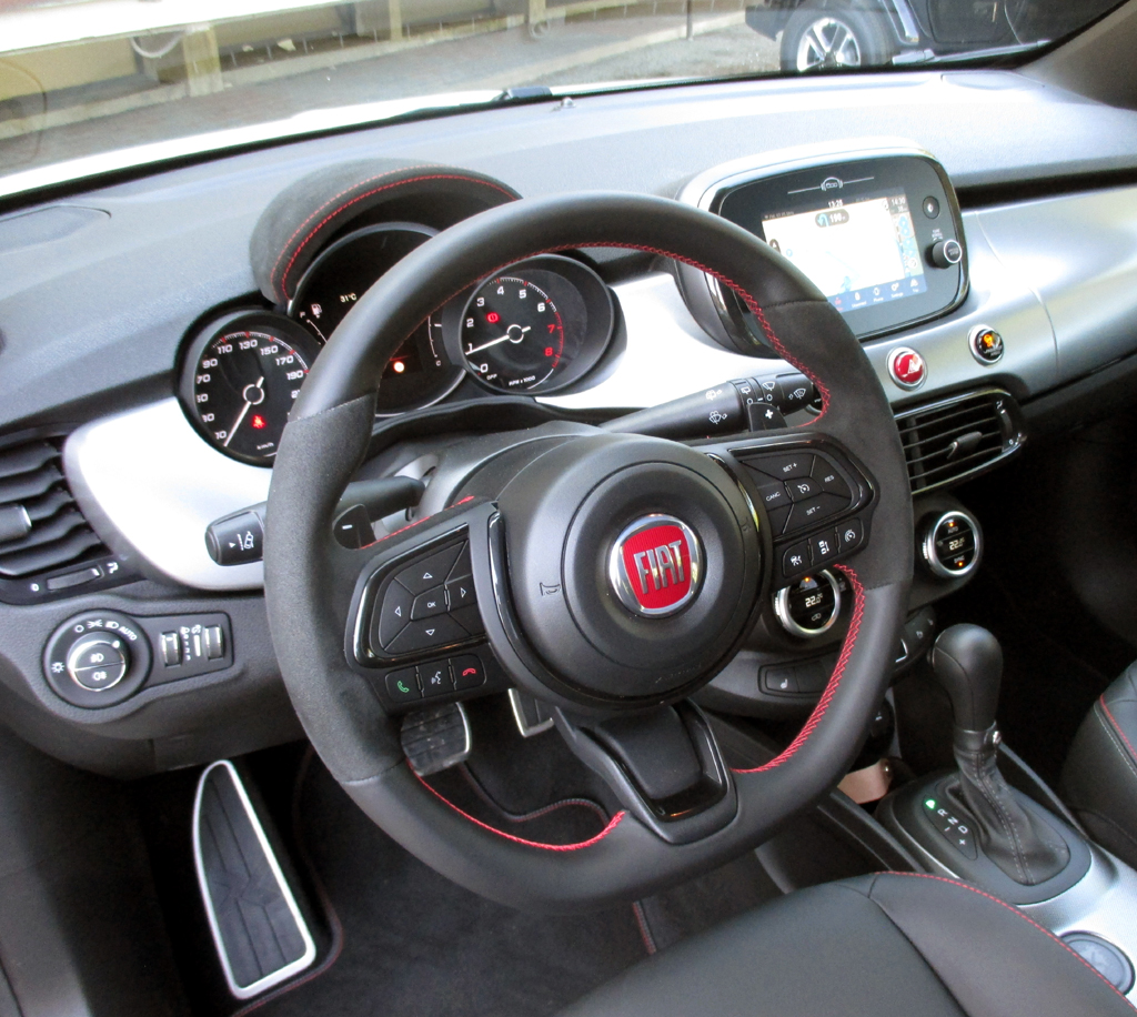 Das Auto: Der vergleichsweise geräumige 500X, solide verarbeitet, für seine Klasse standesgemäß anmutend, 4,26 Meter lang, Radstand 2,57 Meter, Kofferraum 350 bis 910/1000 Liter, ist zwischen dem kleinen 500 und dem großen 500L angesiedelt. Fünf Jahre nach seiner Einführung geht Mitte Oktober die ab 23 490 Euro teure Sportvariante als neues Spitzenmodell der bei 19 190 Euro beginnenden X-Baureihe an den Start. Sie setzt außen vom exklusiven Rot über titangraue Details an den Türgriffen bis hin zu speziellen Einsätzen im vorderen Stoßdämpfer entsprechende Akzente. Innen geht es von der besonderen Grafik mit roten Elementen im Zentraldisplay über das mit einer wertigeren Ledernachbildung bezogene, unten abgeflachte Sportlenkrad bis hin zum Schaltknauf in Aluminium genauso sportlich zu. Die Bedienung im eigentlich sehr übersichtlichen, aus den übrigen 500X bereits bekannten Cockpit ist rasch im Griff.