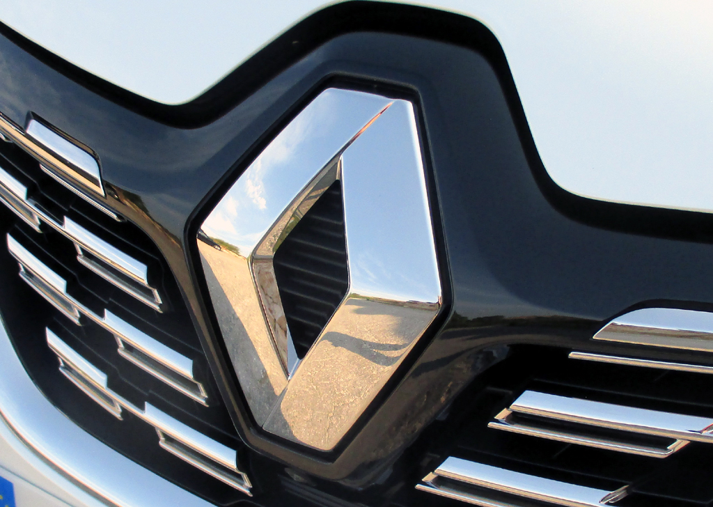 Blick auf die Frontpartie mit dem Markenrhombus, der vorn in den Kühlergrill ragt.