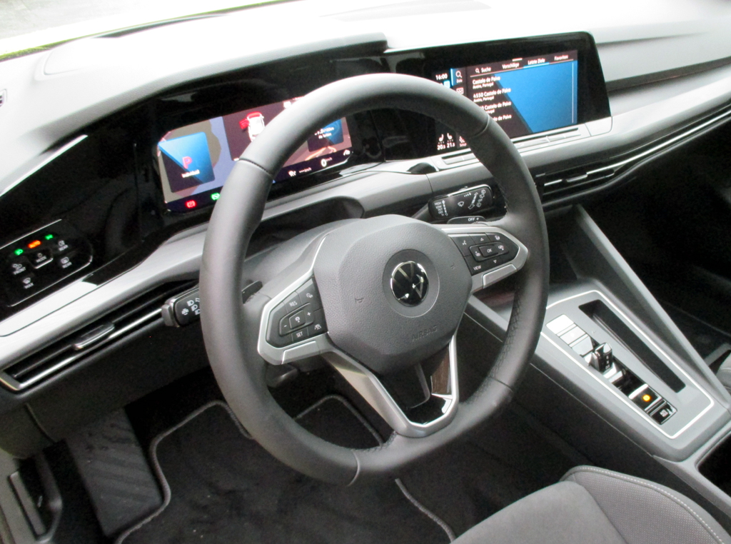 Die Ausstattung: Golf, Life und Style lösen die vorigen Ausstattungslinien Trendline, Comfortline und Highline ab; die R-Line ersetzt das sportlichere Paket des Vorgängers. Schon im Basismodell gehören etwa LED-Scheinwerfer, LED-Rückleuchten, Digitalcockpit, Klimaautomatik, Infotainment, 8,25-Zoll-Touchscreen-Monitor, Multifunktionslenkrad, Spurhalte-, Abbiegehilfe, Umfeldbeobachtung, Notbremsfunktion, Fußgängererkennung und Car2X-Kommunikation zum Grundumfang. Mit dem nunmehr weitgehend digitalisierten Cockpit ist der stets vernetzte Golf laut VW „always on“. Wer will, kann die direkt integrierte Sprachassistenz bitten, Musik zu spielen, Nachrichten und Meldungen übers Wetter abzurufen oder sogar kompatible Smarthome-Geräte zu steuern. Die erstmals in einem Kompaktmodell eingesetzte Reiseassistenz „Travel Assist“ erlaubt, bis Tempo 210 assistiert ohne aktives Lenken, Gasgeben und Bremsen zu fahren. Die Car2X genannte Kommunikation warnt früh vor lokalen Gefahren, indem sie da, wo es möglich ist, im Umfeld von bis zu 800 Metern Informationen anderer Autos nutzt.