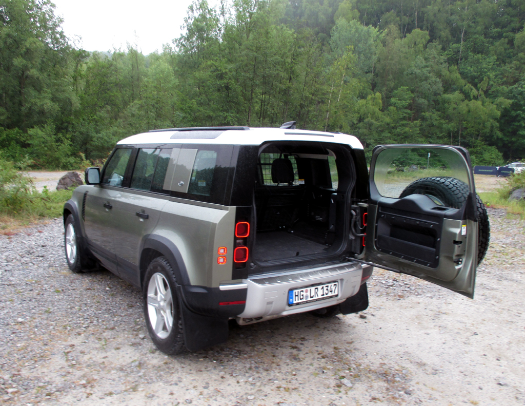 Der Antrieb: Die vier 2,0- und 3,0-Liter-Aggregate sind nach der strengeren Abgasnorm Euro-6d-Temp freigegeben. Der kleinere Vierzylinder-Turbobenziner ab 59 800 Euro leistet 300, der größere, mittels integriertem Riemen-Starter-Generator und Lithium-Ionen-Batterie als Mildhybrid ausgelegte Sechszylinder 400 PS. Die Vierzylinder-Twinturbodiesel sind 200 und 240 PS stark. Alle stellen durchzugsstärkere 400 bis 550 Newtonmeter Drehmoment bereit, beschleunigen die leer 2261 bis 2418 Kilo schweren Defender 100, die Lasten bis 3,5 Tonnen ziehen können, in 6,1 bis 10,3 Sekunden aus dem Stand auf Tempo 100, schaffen 175 bis 208 Stundenkilometer Spitze. Eine gut abgestufte Achtgang-Automatik überträgt die Kraft auf die vier Räder. In Verbindung damit gibt Land Rover den nach dem realistischeren WLTP-Messverfahren ermittelten Verbrauch im Mix bei den Benzinern mit 10,2 und 9,9, bei den Diesel jeweils mit maximal 7,7 Litern an, zumindest im Datenblatt. Wir sind im 240-PS-Twinturbodiesel unterwegs gewesen, dessen Bordcomputer bei uns am Ende nach normalen Orts-, Landstraßen- und kurzen Autobahnfahrprofilen 8,6, nach den schwierigeren Geländepassagen auf dem Land-Rover-Experience-Gelände bei Wülfrath doch 13,1 Liter angezeigt hat.