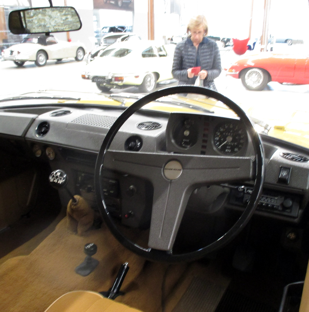 Dieser Range Rover, 3,5 Liter, Achtzylinder, 135 PS, Bahama Gold, ist originalgetreu restauriert. Blick ins Cockpit.
