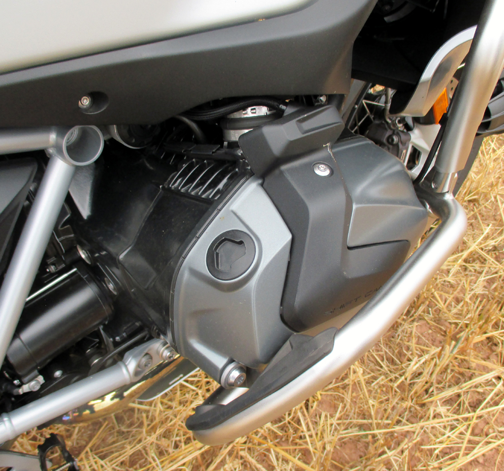 Der wassergekühlte Boxer mit 1254 Kubikzentimetern Hubraum, zwei obenliegenden stirnradgetriebenen Nockenwellen, Ausgleichswelle und variabler Einlass-Nockenwellensteuerung setzt die GS mit 136 PS und mit für Motorräder gewaltigen 143 Newtonmetern beeindruckend in Szene. Der Viertakter liefert Druck aus jedem Drehzahlband, erreicht seine maximale Durchzugskraft bei 6250 Umdrehungen pro Minute. Die Federwege vorn/hinten betragen 21/22 Zentimeter. Den Sprint aus dem Stand auf Tempo 100 erledigt die Adventure in knapp 3,5 Sekunden. Der Vortrieb endet erst weit jenseits der 200-Stundenkilometer-Marke. Das entsprechend sportlich abgestufte Sechsgang-Getriebe ist leicht schaltbar. Die von den Münchnern zumindest im Datenblatt so angegebenen 4,8 Liter Mixverbrauch haben wir leider nicht erreicht. Bei uns hat der Bordcomputer am Ende nach normalen Orts-, Landstraßen- und schnelleren Autobahnfahrprofilen 6,4 Liter angezeigt.