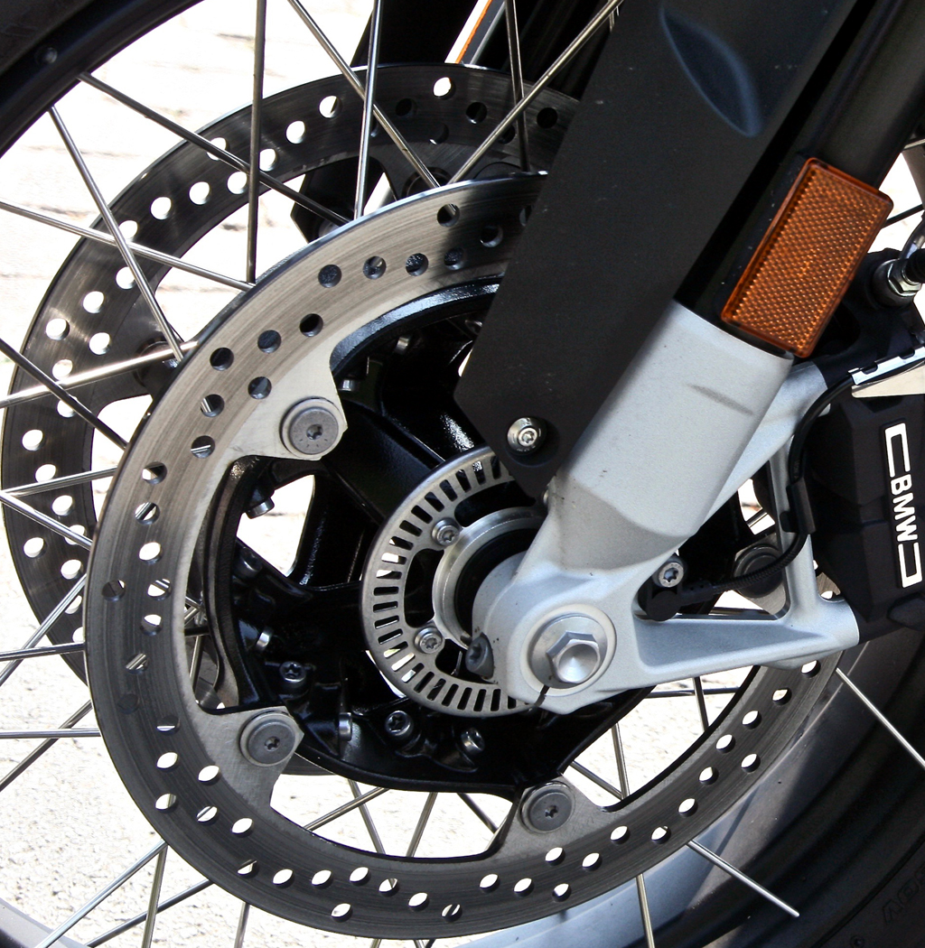 Blick auf die Bremsanlage vorn mit ABS und Stahlflexleitungen. Das Display ist gut ablesbar.