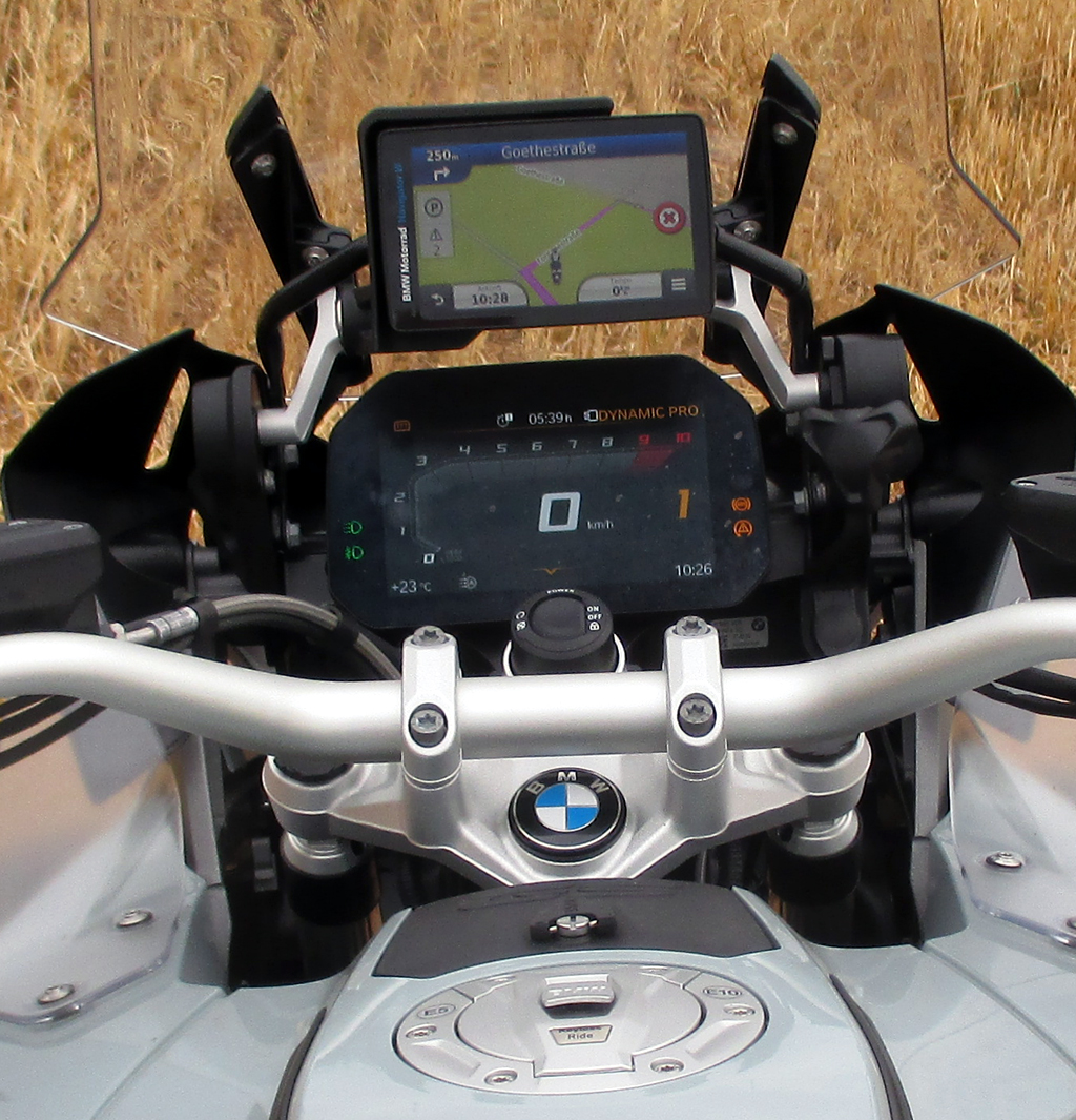 Unter anderem ABS, Tagfahrlicht und ein sehr gut ablesbares Display, das alle Parameter anzeigt, die Fahrzeugzustand, Reiseroutine und Fahrdynamik betreffen, sind Serie. Die Fahrersitzbank kann in 89 oder 91 Zentimetern Höhe arretiert, das Windshield stufenlos dazu passend selbst während der Fahrt noch eingestellt werden. Die optionale Navigation ist zuverlässig, leicht per Handrad am Lenker bedienbar. Traktionskontrolle und Antischlupfregelung lassen sich ebenfalls gegen Mehrkosten sogar individuell konfigurieren. Die Aufpreisliste für BMW-Zubehör-Komponenten ist ganz schön lang.