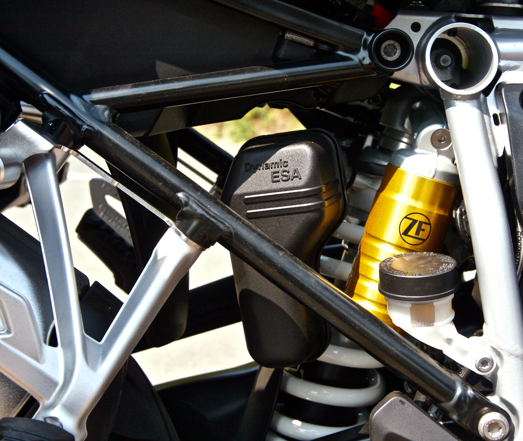 Auf den kleinen Eifelstraßen rund um die Nürburgring-Nordschleife hat die BMW gezeigt, was sie kann. Die zahlreichen Modi des elektronisch verstellbaren Fahrwerks mit automatischer Beladungserkennung lassen keine Wünsche offen, bügeln Unebenheiten auf der Fahrbahn glatt. Das vordere 19-Zoll-Rad führt die GS ausgezeichnet in der Spur. Hinten ist eine 17-Zoll-Felge montiert. Die werkseitig aufgezogenen 120er- und 170er-Bridgestone-Reifen Battlax Adventure harmonieren ausgezeichnet mit der Maschine. Egal ob verwinkelte Passage, Flickenteppich oder Autobahn: Die GS erfährt jedes Geläuf sicher und mit stoischer Präzision. Die mit Stahlflexleitungen versehene Bremsanlage ist sehr gut dosierbar, verzögert standfest. Das Aufstellmoment in den Kurven ist fast nicht zu spüren. Der Antrieb arbeitet lastwechselfrei. Etappen selbst von mehreren hundert Kilometern gestalten sich weitgehend stressfrei, vermitteln einen hohen Spaßfaktor.