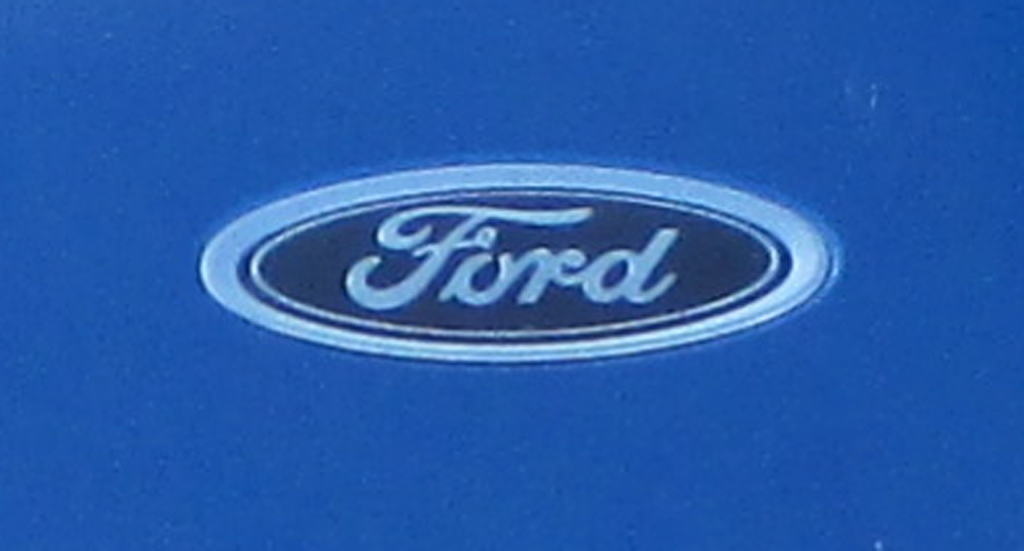 Blick auf die Frontpartie mit dem blauen Markenoval über dem Kühlergrill.