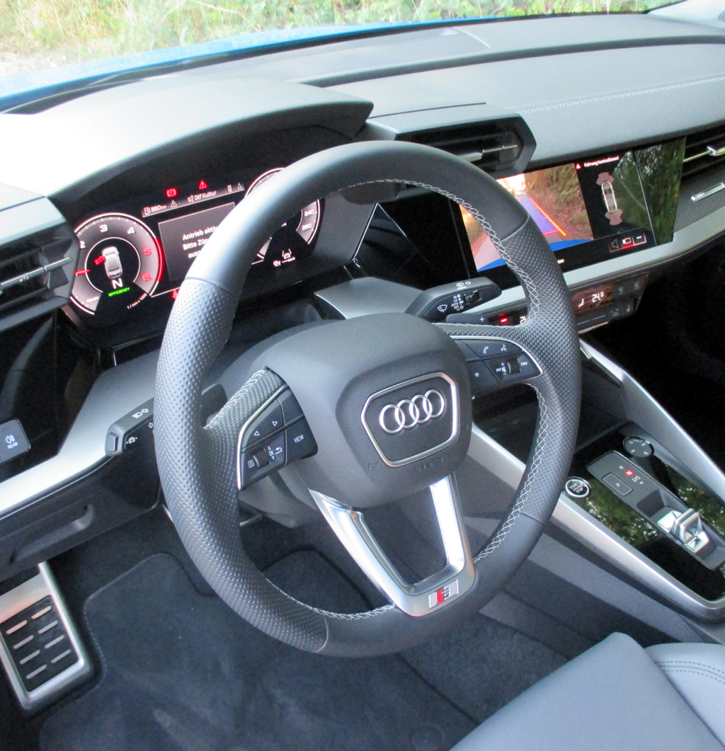 Wie beim Sportback gibt es drei Lines. Die erste über dem Basismodell ist Advanced, die zweite S-Line. Schon im Einstiegs-A3 gehören etwa Klimaanlage, Multimedia, 10,1-Zoll-Display, Digitalradioempfang, Vernetzung, Geschwindigkeitsbegrenzungsanlage, 10,25-Zoll-Digitalkombiinstrument (als virtuelles Cockpit 12,3-Zoll), Ausweichassistenz, Spurverlassenswarnung, Licht-, Regensensor und 16-Zoll-Leichtmetallräder mit 205er-Reifen zum Grundumfang, während bei den beiden anderen 17-Zöller mit 225er-Reifen Standard sind. Die Erstauflage Edition One ist mit Matrix-LED-Scheinwerfern, LED-Heckleuchten, Kunstleder, Sportsitzen, Aluminiumoptik-Interieur, Edelstahlpedalen, Ambiente-, Glanzpaket, Sportsitzen und 18-Zöllern bestückt. Sonderausstattungen wie Matrix-LED-Scheinwerfer, Dreizonen-Klimaautomatik, Assistenzpaket, Adaptivfahrwerk, Soundsystem, Businesspaket, Headup-Display, Feinnappa-Leder und 18-Zöller mit 225er-Reifen haben den Grundpreis des Testwagens um über 19 000 auf 57 540 Euro erhöht.
