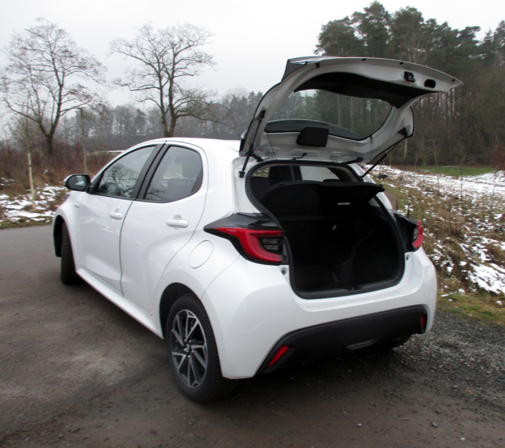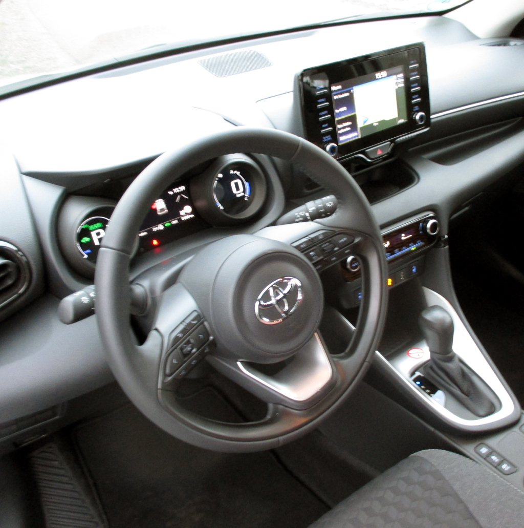 Leer bis zu 1180 Kilo schwerer Fünftürer. Für fünf Personen ausgelegt. Sauber verarbeitet. In Club-Ausführung für das Segment durchaus wertig anmutend. 3,94 Meter lang, 1,52/1,74 Meter breit, 1,50 Meter hoch, Radstand 2,56 Meter, Kofferraum 286 bis 768 Liter. Neue Plattform. Dadurch etwas kürzer und flacher, aber auch breiter und mit mehr Radstand. Pfiffiges Design. Heck ähnelt mittlerweile etwas dem des größeren Crossover-Bruders C-HR. Kühlergrill und Heckspoiler sind beim Club-Hybrid schwarz lackiert. Gutes Raumgefühl. Vorn ordentlich Platz. Hinten – es ist immer noch ein Kleinwagen – beengter. Gepäckabteil trotz relativ kleiner Öffnung weitgehend problemlos beladbar. Cockpit insgesamt übersichtlicher. Bedienung könnte trotzdem intuitiver sein.