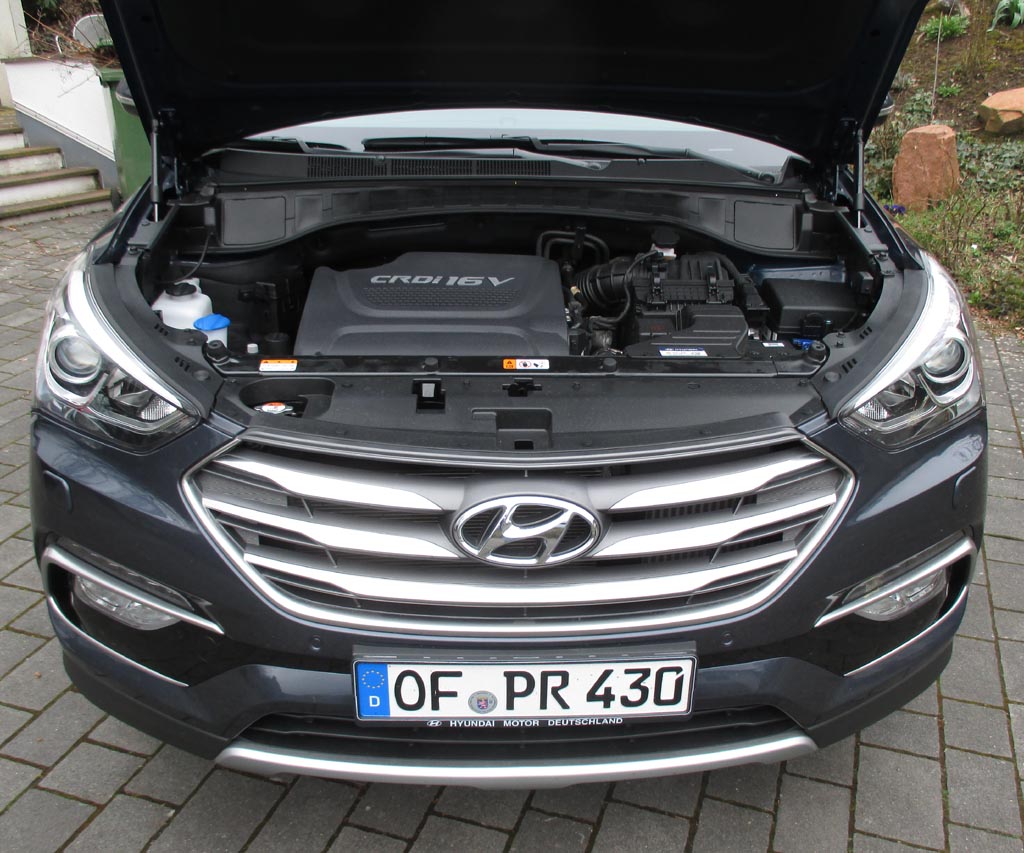 Bei dem getesteten Vierzylinder handelt es sich um einen durchaus kultivierten 2,0-Liter mit 150 PS und 400 Newtonmeter schon früh ab unter 2000 Touren. Der Selbstzünder macht diesen Hyundai in der Spitze bis Tempo 187 schnell. Ein gut abgestuftes Sechsgang-Schaltgetriebe überträgt die Kraft auf die Räder. Die in Verbindung mit der Stopp/Start-Spritsparautomatik zumindest im Datenblatt im Mix so angegebenen 5,8 Liter Verbrauch haben wir im normalen Fahrbetrieb nicht erreicht. Bei uns hat der Bordcomputer am Ende nach meist Stadt- und Kurzstreckenfahrprofilen mit häufigeren Lastwechsel sowie zuletzt zügigerer Autobahnfahrt 7,6 Liter angezeigt.