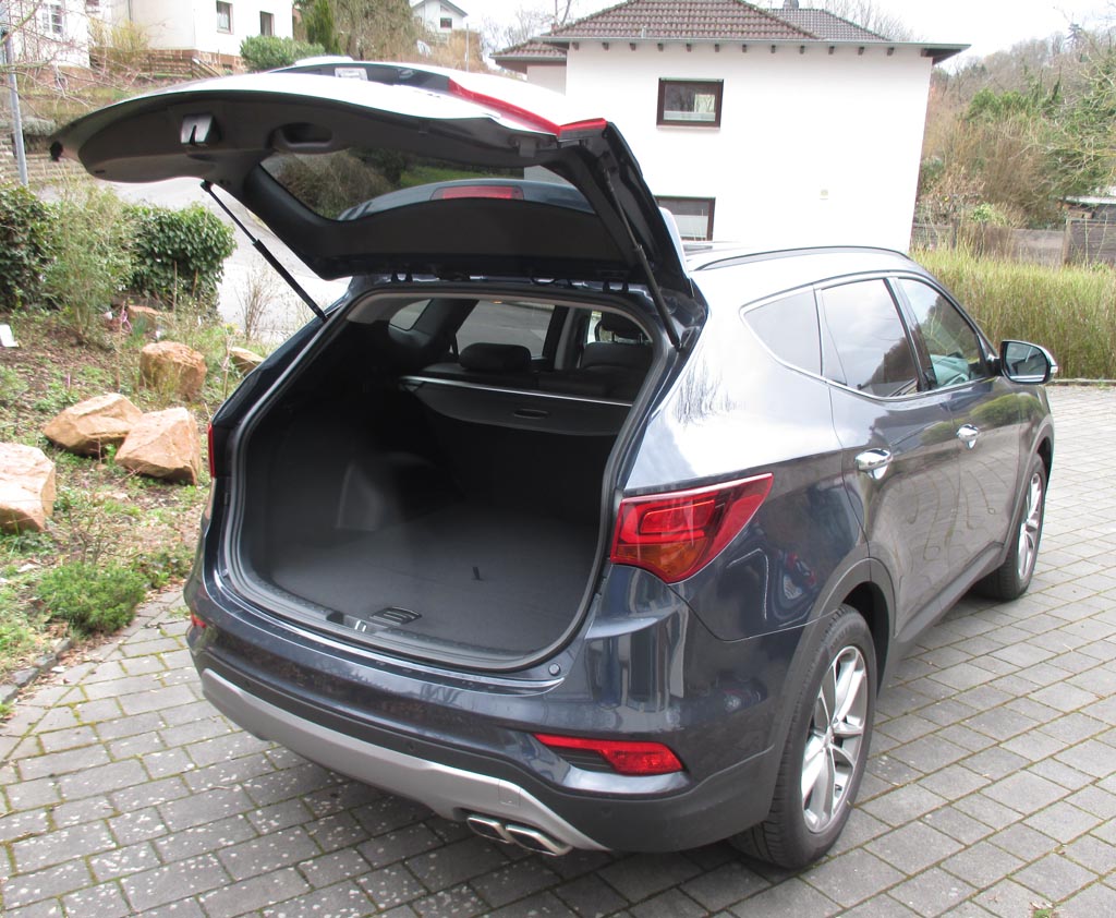 Die dritte Generation ist seit 2012 bei uns auf dem Markt, hat in der Zwischenzeit ein Facelift bekommen. Ist der Santa Fe 2001 bei seiner Premiere hierzulande noch eher barock aufgetreten, wirkt er mittlerweile deutlich schnittiger und dynamischer, kommt auf 4,70 Metern Länge überaus solide verarbeitet daher, mutet für die Mittelklasse sogar recht wertig an. Platz ist bei 2,70 Metern Radstand selbst im Fond noch ordentlich vorhanden. Das relativ leicht zugängliche Gepäckabteil fasst stattliche 585 bis 1680 Liter bei geteilt umklapp- und zudem in der Neigung verstellbarer Rücksitzlehnen. Die Bedienung im übersichtlichen Cockpit ist rasch im Griff. Die Rundumsicht geht in Ordnung.