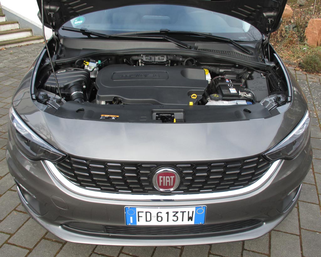 Bei dem getesteten Vierzylinder handelt es sich um einen einigermaßen kultivierten 1,6-Liter mit 120 PS und kräftigeren 320 Newtonmetern ab deutlich unter 2000 Touren. Der Selbstzünder macht diesen Fiat in der Spitze 200 Stundenkilometer schnell. Ein ganz gut abgestuftes manuelles Sechsganggetriebe überträgt die Kraft auf die Räder. Die in Verbindung mit der spritsparenden Stopp/Start-Funktion zumindest im Datenblatt so angegebenen nur 3,7 Liter Mixverbrauch haben wir leider nicht erreicht. Bei uns hat der Bordcomputer im Praxistext am Ende nach gemischten Stadt-, Kurz-, Mittelstrecken- und flotteren Autobahnfahrprofilen doch 6,3 Liter angezeigt.