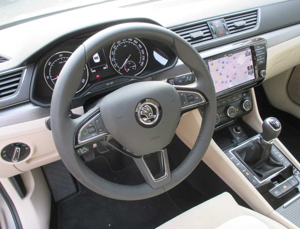 Bei dem getesteten Vierzylinder handelt es sich um einen 2,0-Liter mit 150 PS und durchzugsstärkeren 340 Newtonmetern schon früh ab 1750 Touren. Der Selbstzünder macht diesen Skoda in der Spitze 220 Stundenkilometer schnell. Ein gut abgestuftes Sechsgang-Schaltgetriebe überträgt die Kraft auf die Räder. Die in Verbindung mit der Stopp/Start-Spritspartechnik angegebenen vier Liter Mixverbrauch haben wir leider nicht erreicht. Bei uns hat der Bordcomputer am Ende nach meist Stadt- und doch auch etwas zügigeren Autobahnfahrprofilen trotzdem immer noch bemerkenswerte 5,1 Liter angezeigt.