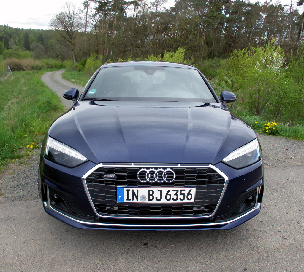Der A5 wird seit 2007 unter dieser Bezeichnung als Coupé und Cabrio gebaut. 2009 ist die Sportback genannte fünftürige Schräghecklimousine auf den Markt gekommen. Die zweite Generation, 4,75 Meter lang, 1,84/2,02 Meter breit, 1,38 Meter hoch, Radstand 2,82 Meter, Kofferraum erweiterbare 465 Liter, steht seit 2016 bei den Händlern. Anfang 2020 hat Audi das Facelift mit optisch nur dezenter Überarbeitung eingeführt. Der A5 rollt nun mit flacherem und etwas breiterem Kühlergrill zwischen den serienmäßigen LED-Scheinwerfern vom Band. Nach wie vor wirkt der Sportback mit seiner eleganten Karosserie frisch und modern. Die Türausschnitte könnten etwas größer sein. Nach hinten fällt die Kopffreiheit geringer aus. Das Innere überzeugt aber, was Verarbeitung und Materialien betrifft. Schade, dass Dreh-/Drück-Steller, Touchpad, Schnellwahltasten für die Grundfunktionen und die praktischen Direktwahltasten verschwunden sind, die nicht ganz ablenkungsfreie Bedienung im digitalen Cockpit weitgehend über den 10,1-Zoll-Multimedia-Touchscreen erfolgt.