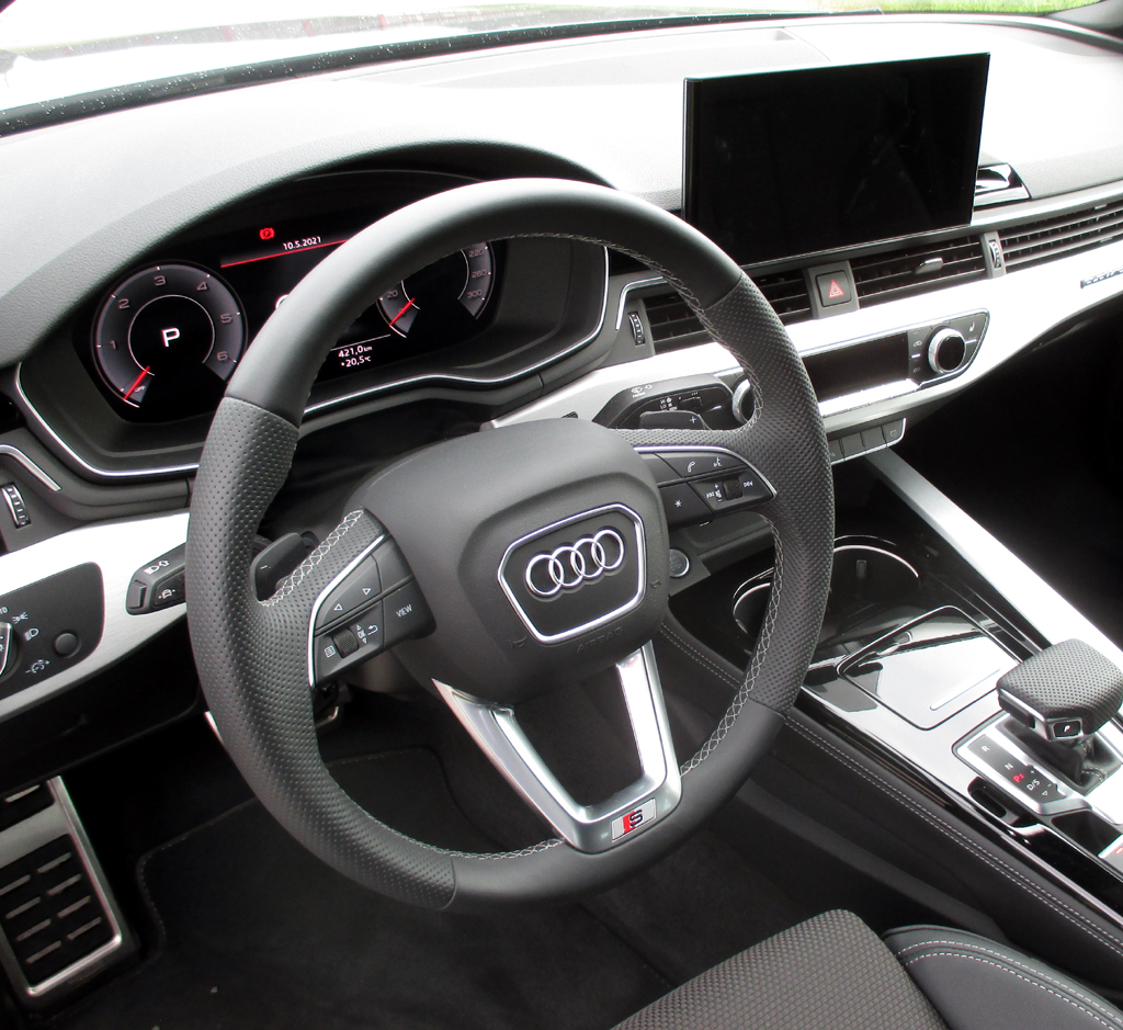 Bei dem getesteten Vierzylinder handelt es sich um einen 2,0-Liter mit im Drehmoment stärkeren 400 Newtonmetern schon relativ früh ab 1750 bis 3250 Touren. Der nach der Abgasnorm Euro-6d freigegebene Selbstzünder beschleunigt diesen Audi in 7,0 Sekunden auf Tempo 100, macht ihn in der Spitze je nach Reifen 210/242 Stundenkilometer schnell. Eine sehr gut abgestufte Siebengang-Box mit Doppelkupplung überträgt die Kraft des Quattros mit Ultra-Technologie auf alle Räder. Die in Verbindung damit von den Ingolstädtern zumindest im Datenblatt so angegeben maximal 4,8 Liter kombinierten Verbrauch haben wir nicht erreicht; bei uns hat der Bordcomputer am Ende des standardisierten Zweiwochen-Tests nach normalen Orts-, Landstraßen- und flotteren Autobahnfahrprofilen bei wechselnden Fahrmodi und eher moderater sowie konstanter Fahrweise ohne größere Lastwechsel immer noch akzeptable 5,7 Liter angezeigt.